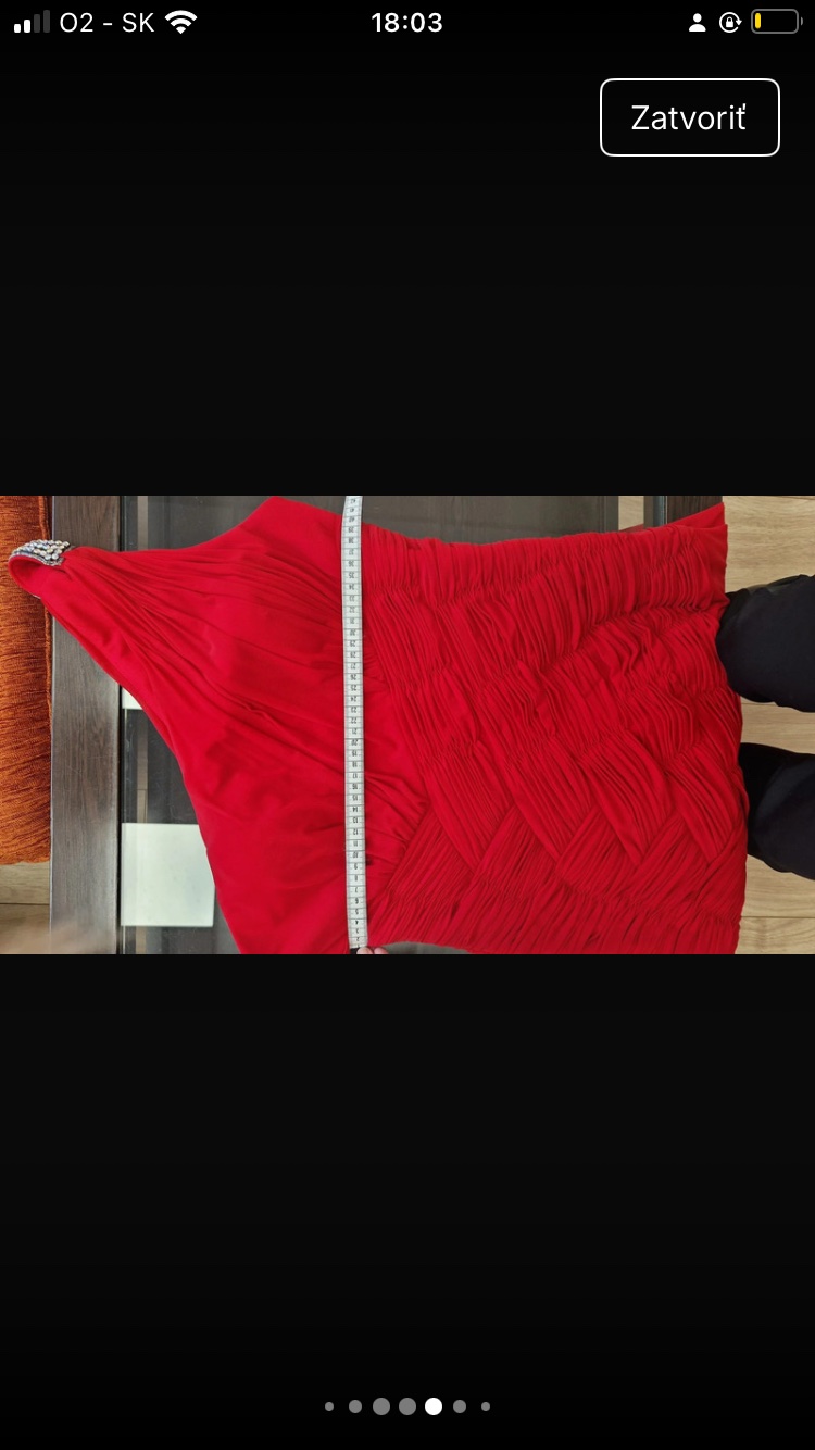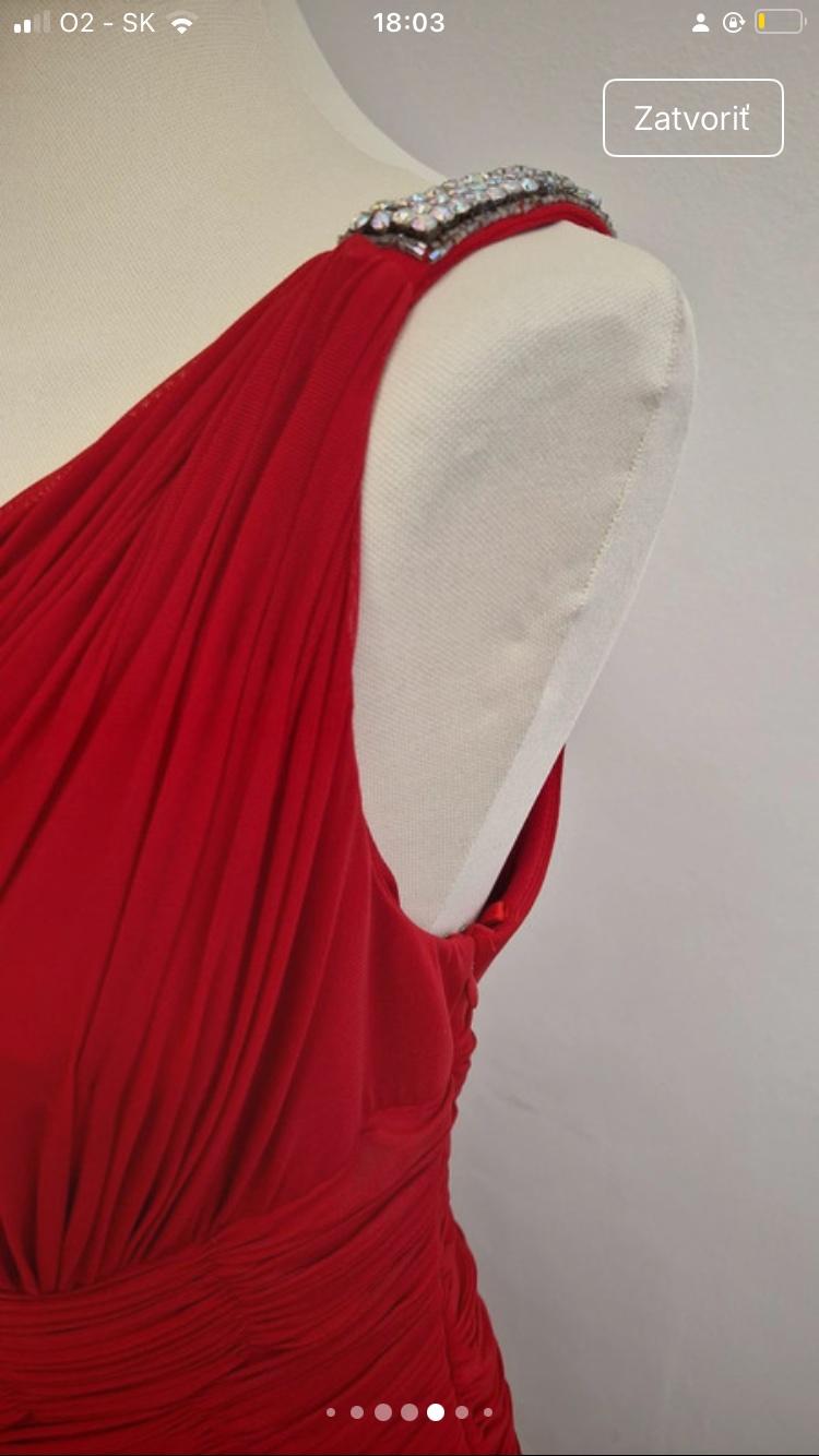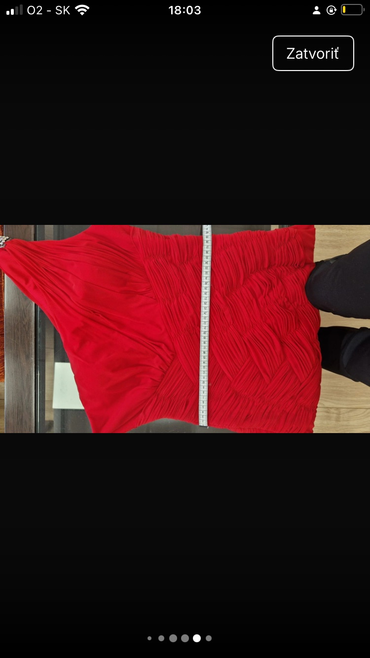 Farba: červená Šatky sú nové aj s visačkou vo veľkosti M a L Materiál: 95% polyester a 5% elastan Prsia: vystužené (zvnútra šiat sú našité háčiky na pripnutie priesvitných alebo ozdobných ramienok)