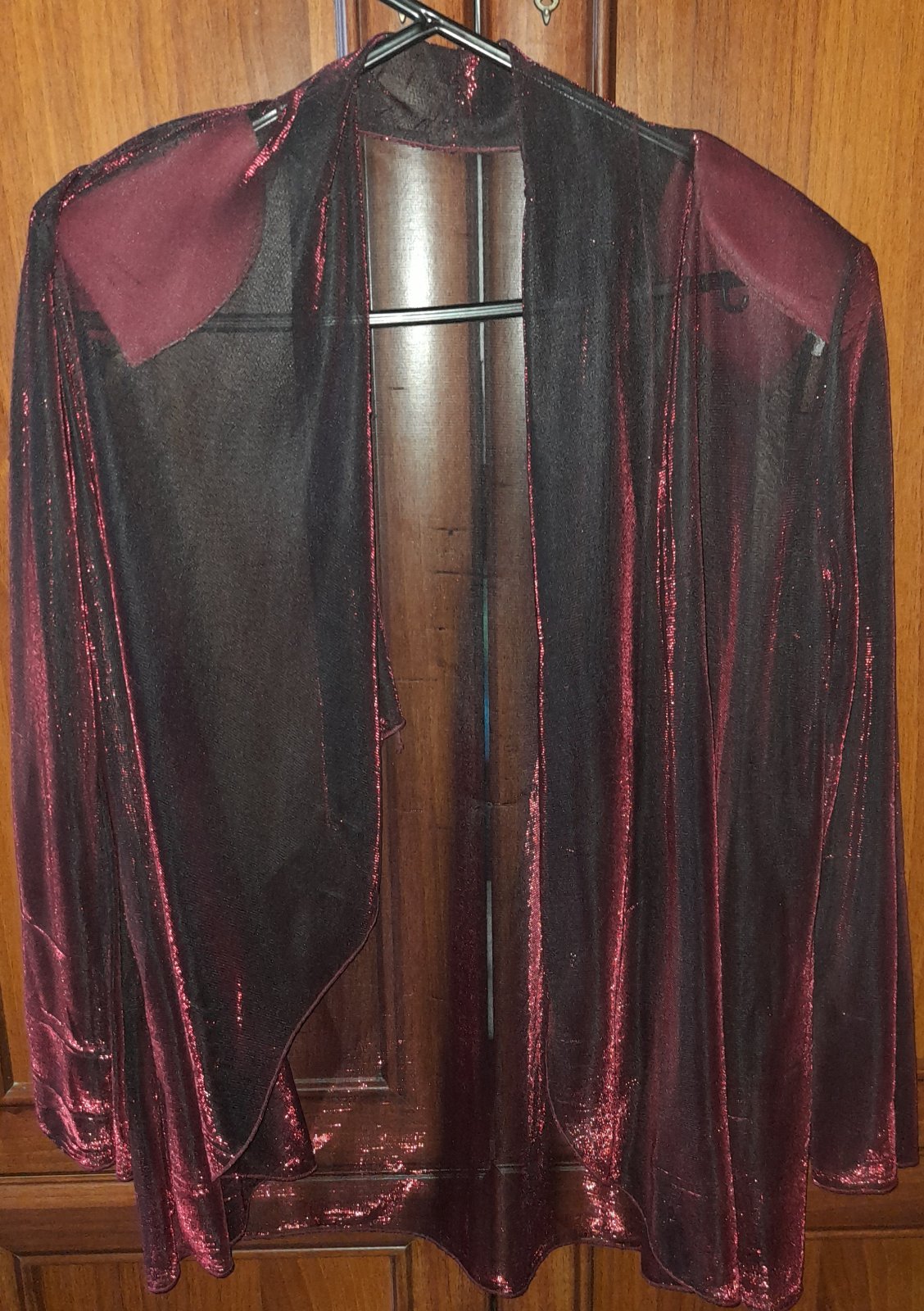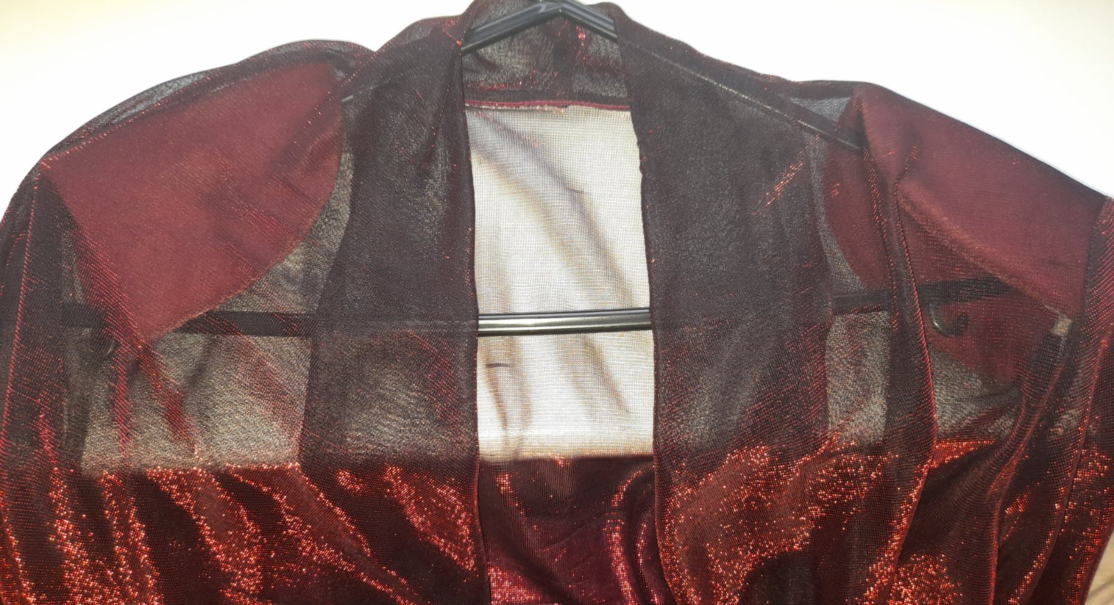 Sačko odlesky trblietavé, nezapína sa, dĺžka 70 cm, rukáv od ramena 56 cm, je priehľadné
