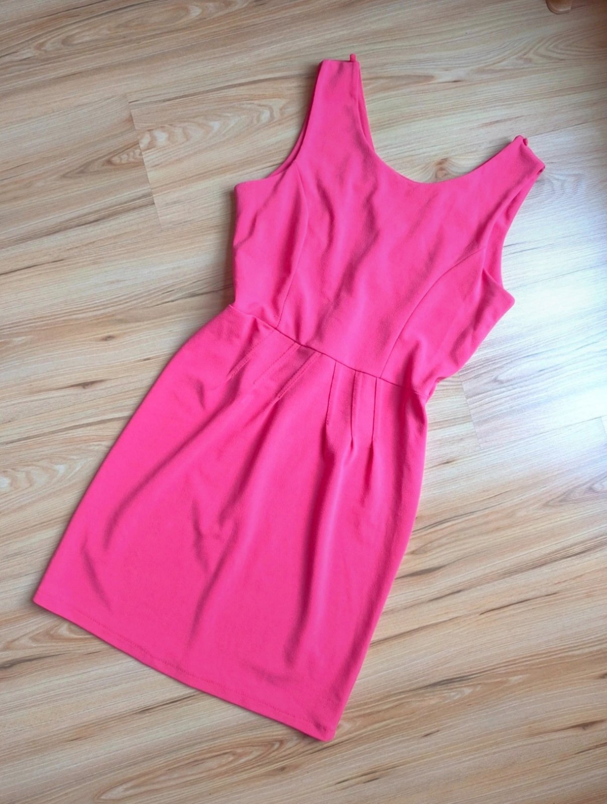 Pekné šaty na bežné nosenie, aj do práce a kľudne aj na oslavu. Majú pútko na opasok, robia peknú postavu, dokonca majú aj pútka na pripnutie náhrdelníku k šatám. Zapínanie na zips na chrbte. Oblečené raz alebo dvakrát, absolútne bez poškodení. Sedí na S aj M. Farba je skôr taká lososovo-ružová.