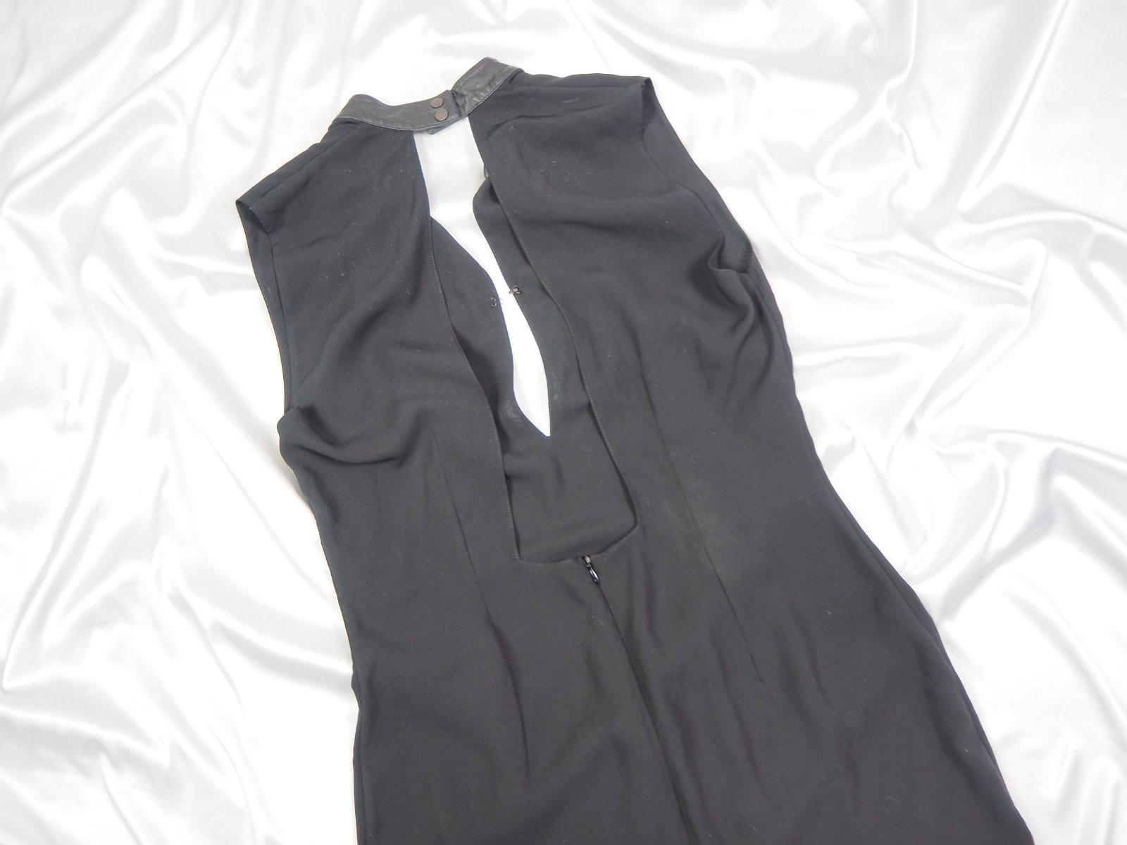 Luxusné čierne šaty s výstrihom, prichytený háčikom, vzadu odhalený chrbátik, bočné rozparky, zadný diel dlhší, materiál 100% polyester, super stav....vysoká pôvodná cena