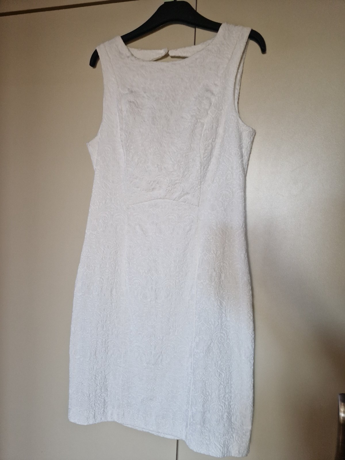 Biele saty z H&M, 1x oblecene, 100% stav, dlzka 94cm, sirka pod pazuchami 47 cm, pruzny material, podda sa