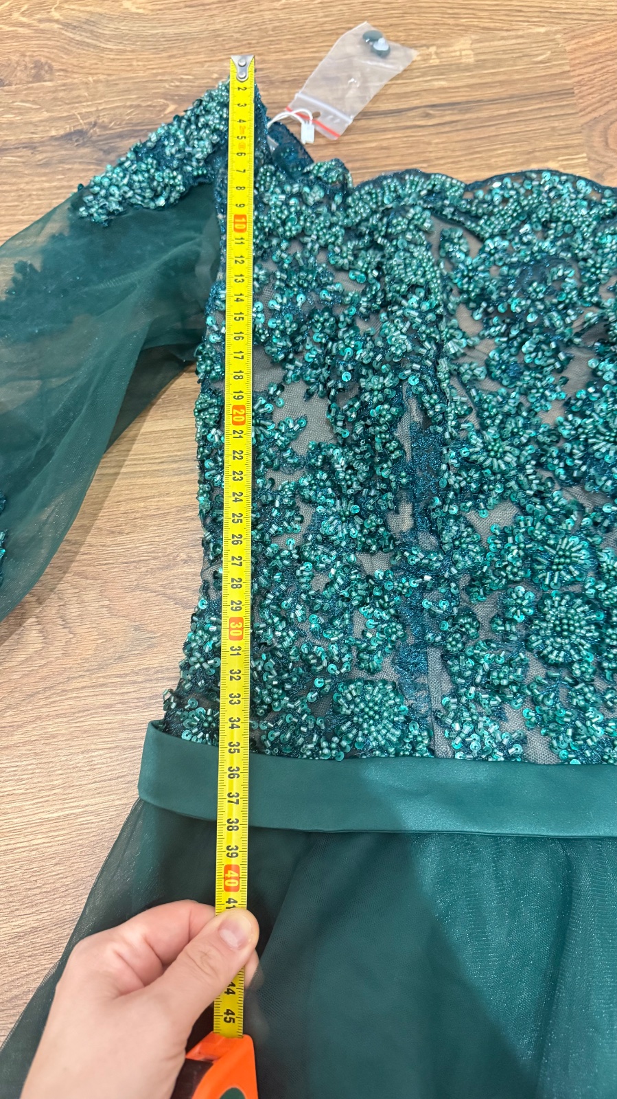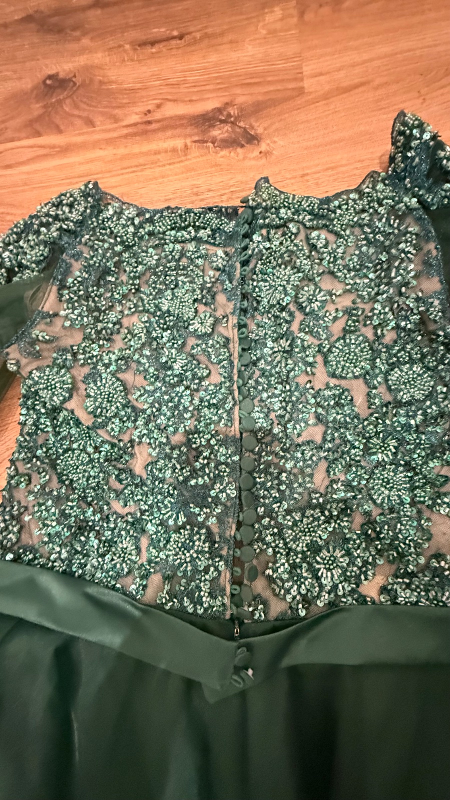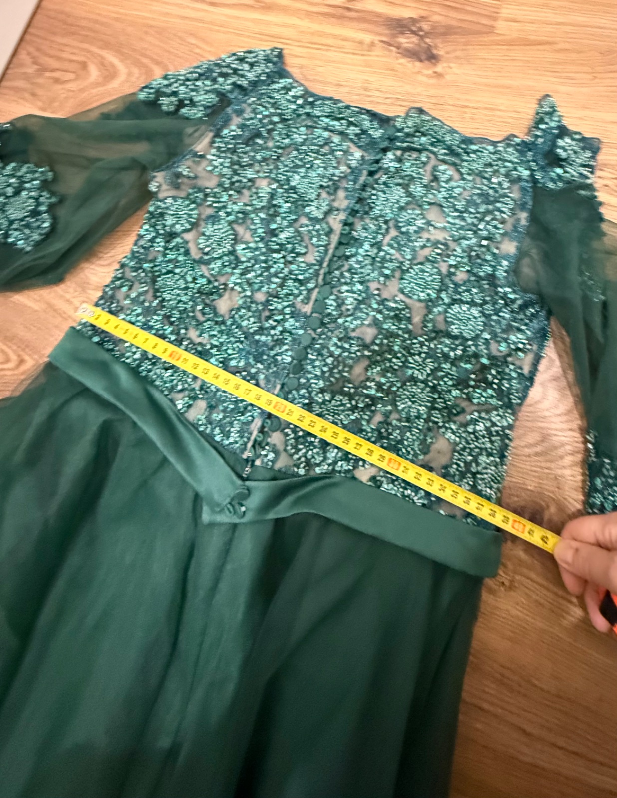 Plesové spoločenské šaty, kvalitný materiál , nenosené, krásne, vzadu malé gombíky, lichotivé postave, plecia odhalené. Ručne vyšívané gorálky v hornej časti.