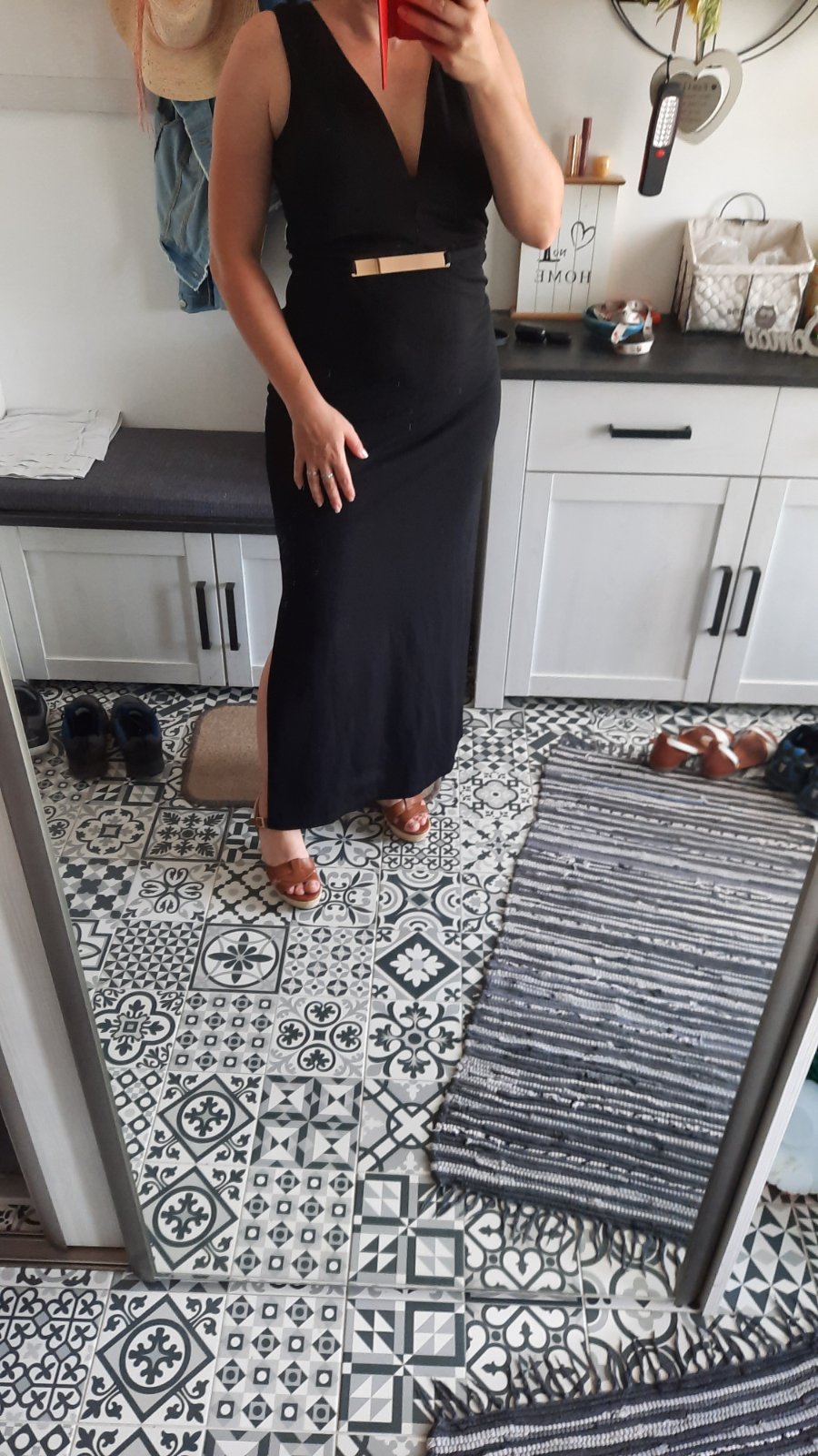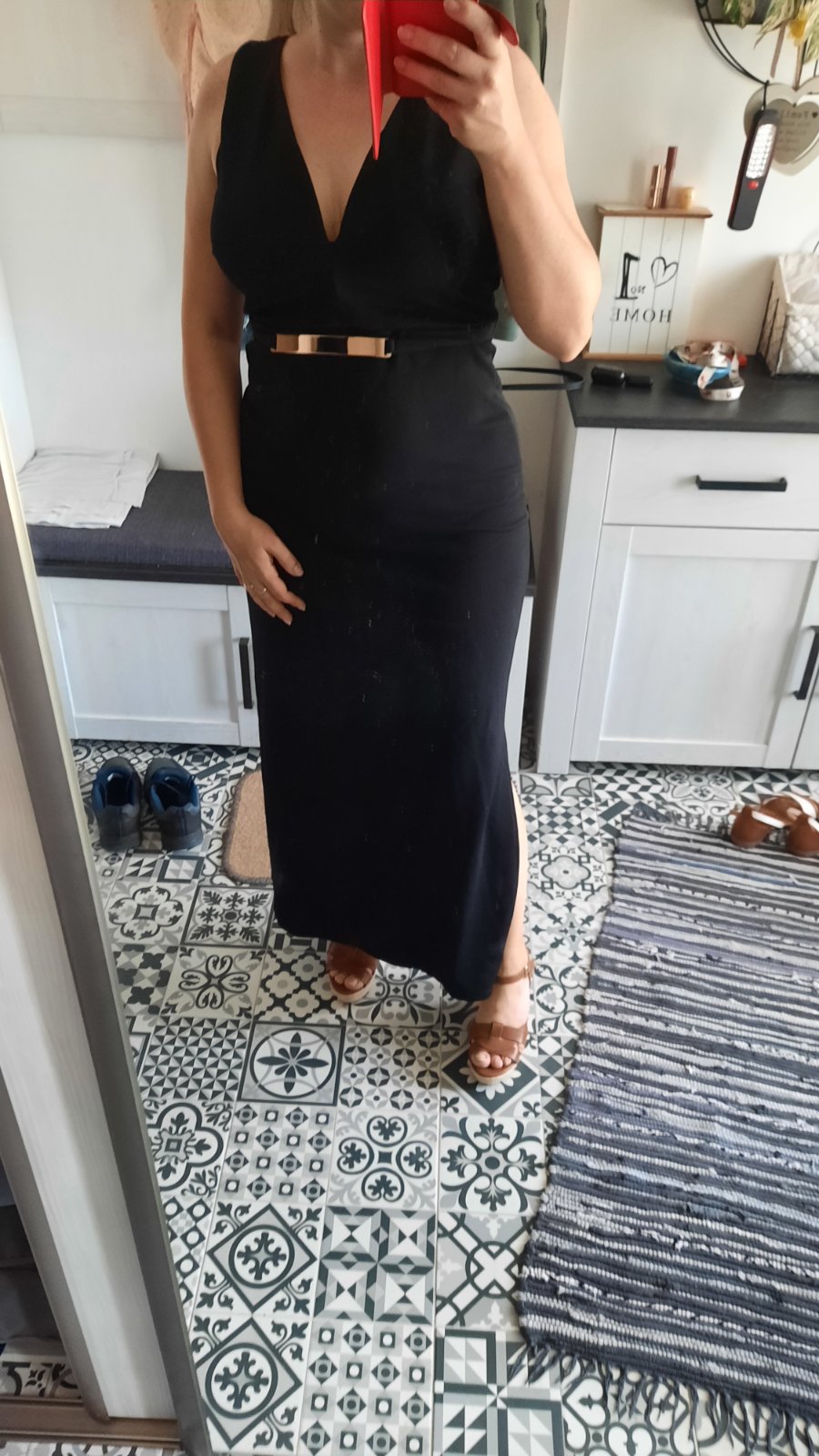 Šaty bez poškodenia,po bokoch rozparky do výšky cca kolien.vystuzene v oblasti pŕs,pekne držia tvar.elasticke.opasok sa vzadu uvazuje,dá sa dat dolu.