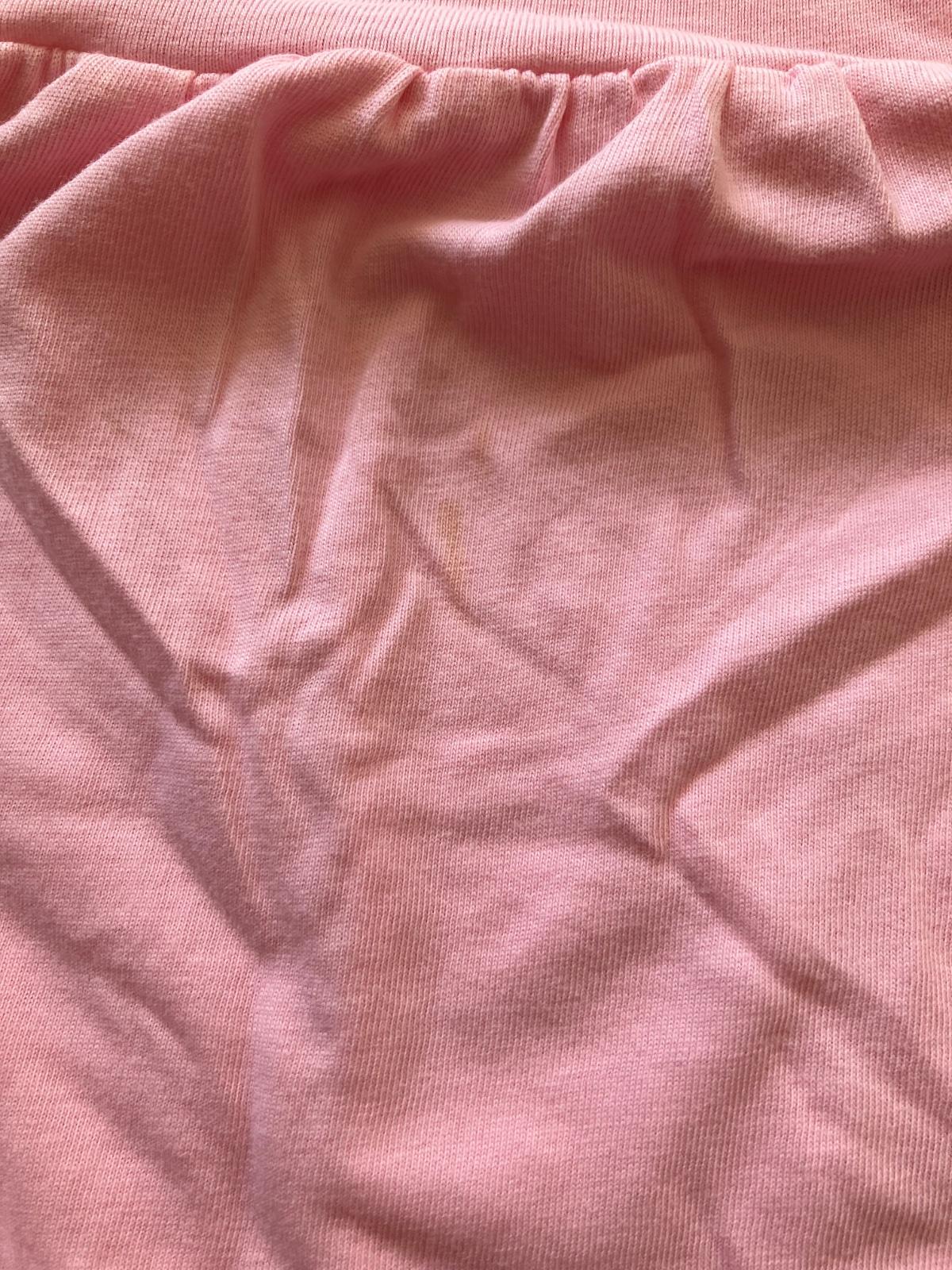 Ružové raz oblečené / foto ale veľmi malé fliačiky na sukničke vpredu aj vzadu. Nie je to ani vidieť.