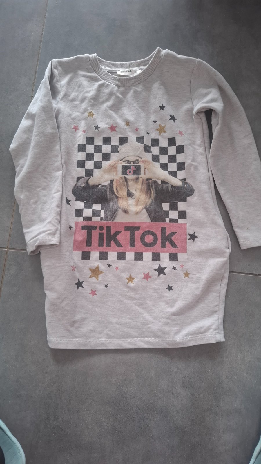 Parádne mikinove šaty - tunika . Na rukáve odfotený nedostatok (pri nosení neni vidieť ) dĺžka 64cm 6-8r