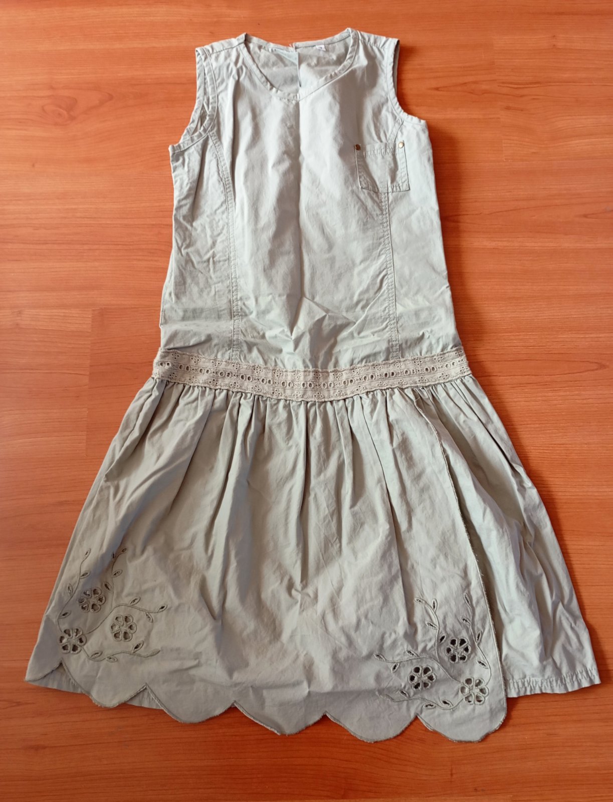plátené šaty, vyšívané detaily, dobrý stav, zapínanie na boku
