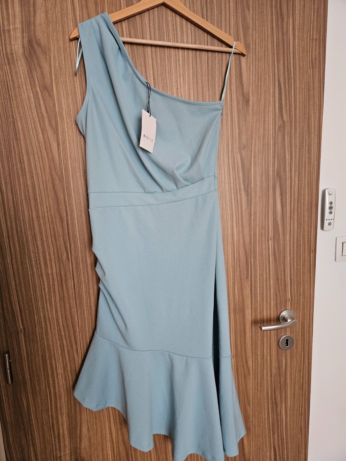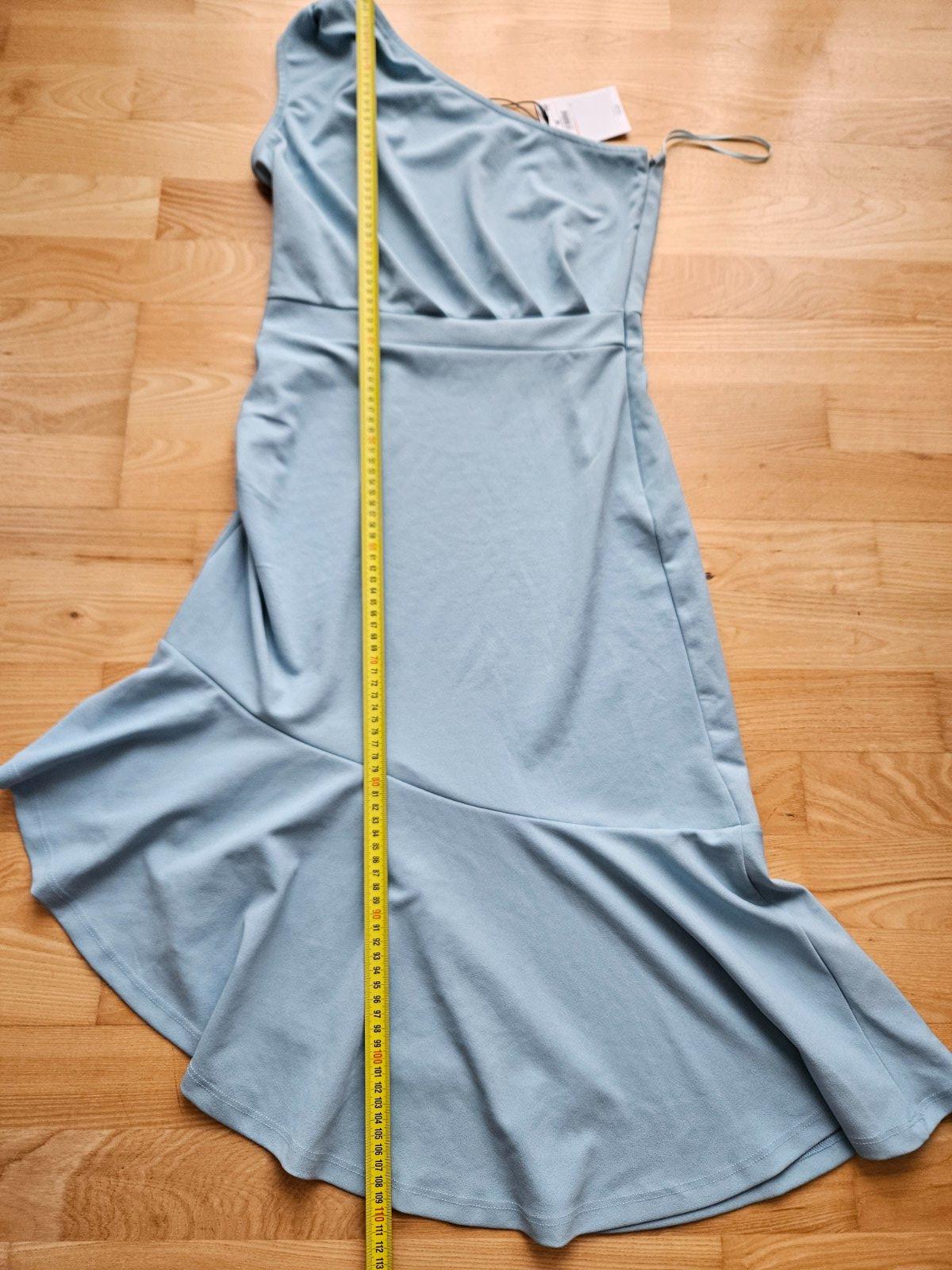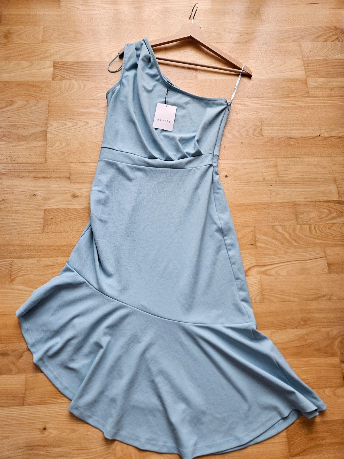 Krásne nové šaty Mohito, pružný materiál, viď foto s rozmermi, zapínanie na boku. Vhodné na svadbu, stužkovú alebo oslavu. Aj na väčšie prsia, ale pás je pevnejší, preto viď rozmery. Kupované tu, žial mi nesadli .