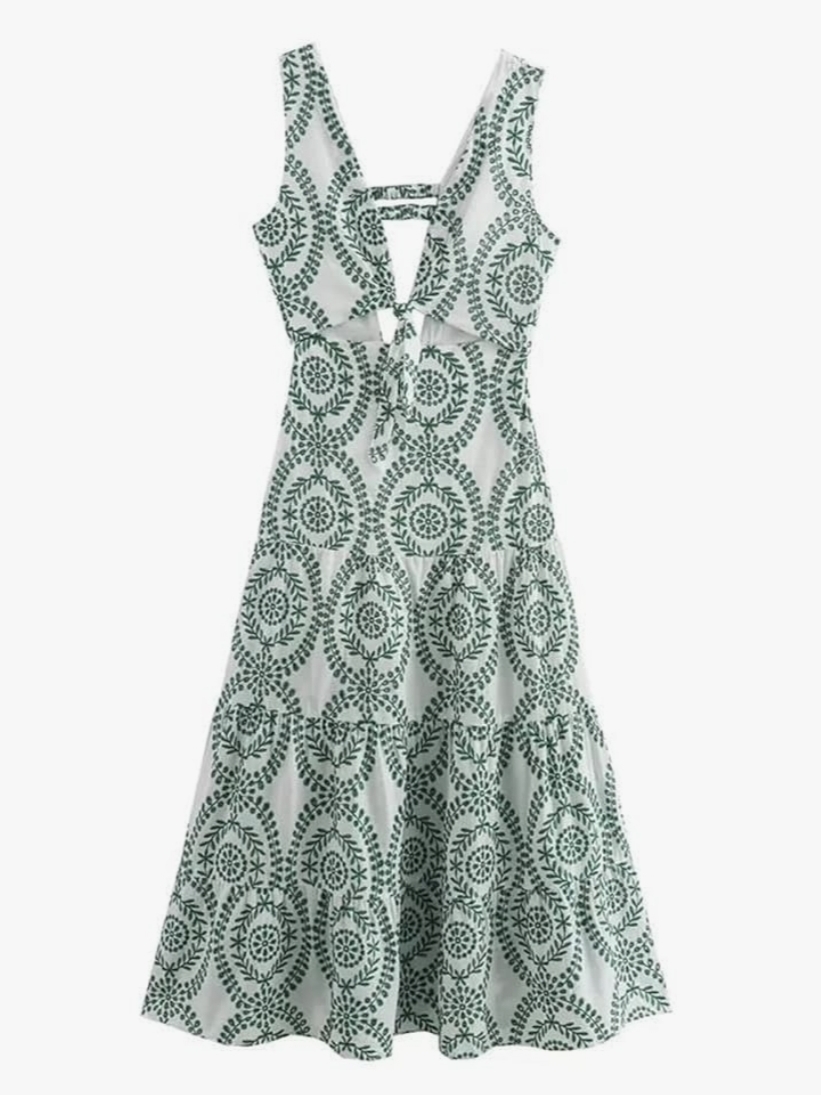 Krásne letné šaty vpredu na zavazovanie, podsite, veľkosť sedí.