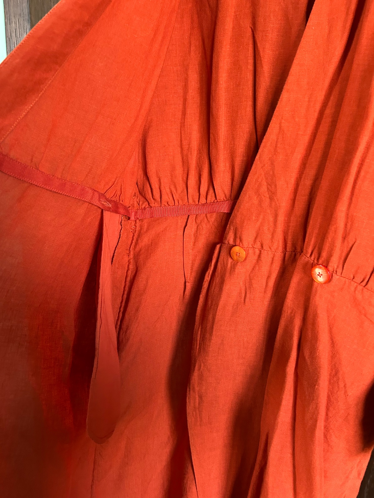 Krasne zavinovacie saty 100% lan, maju siroky opasok, zapinanie na skryte gombiky. Vrecka po bokoch.