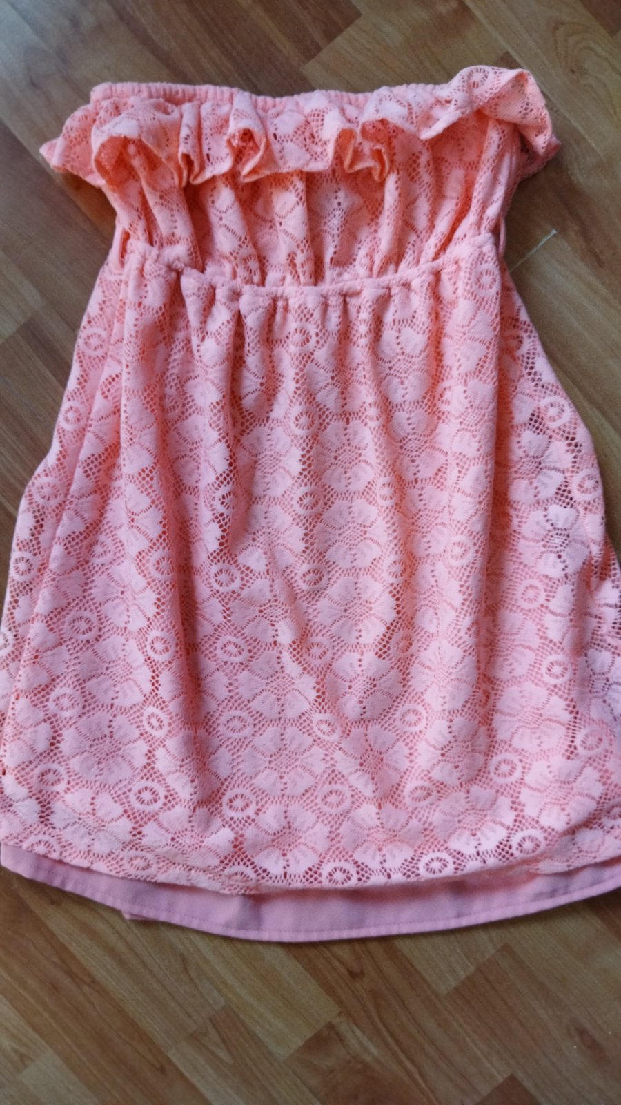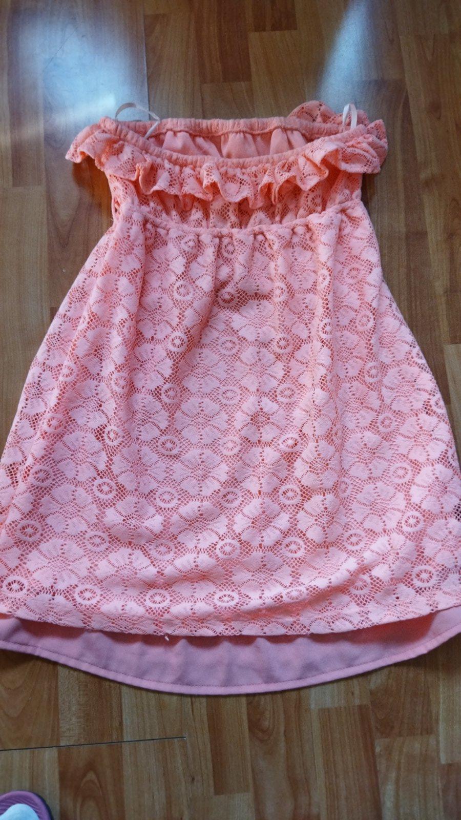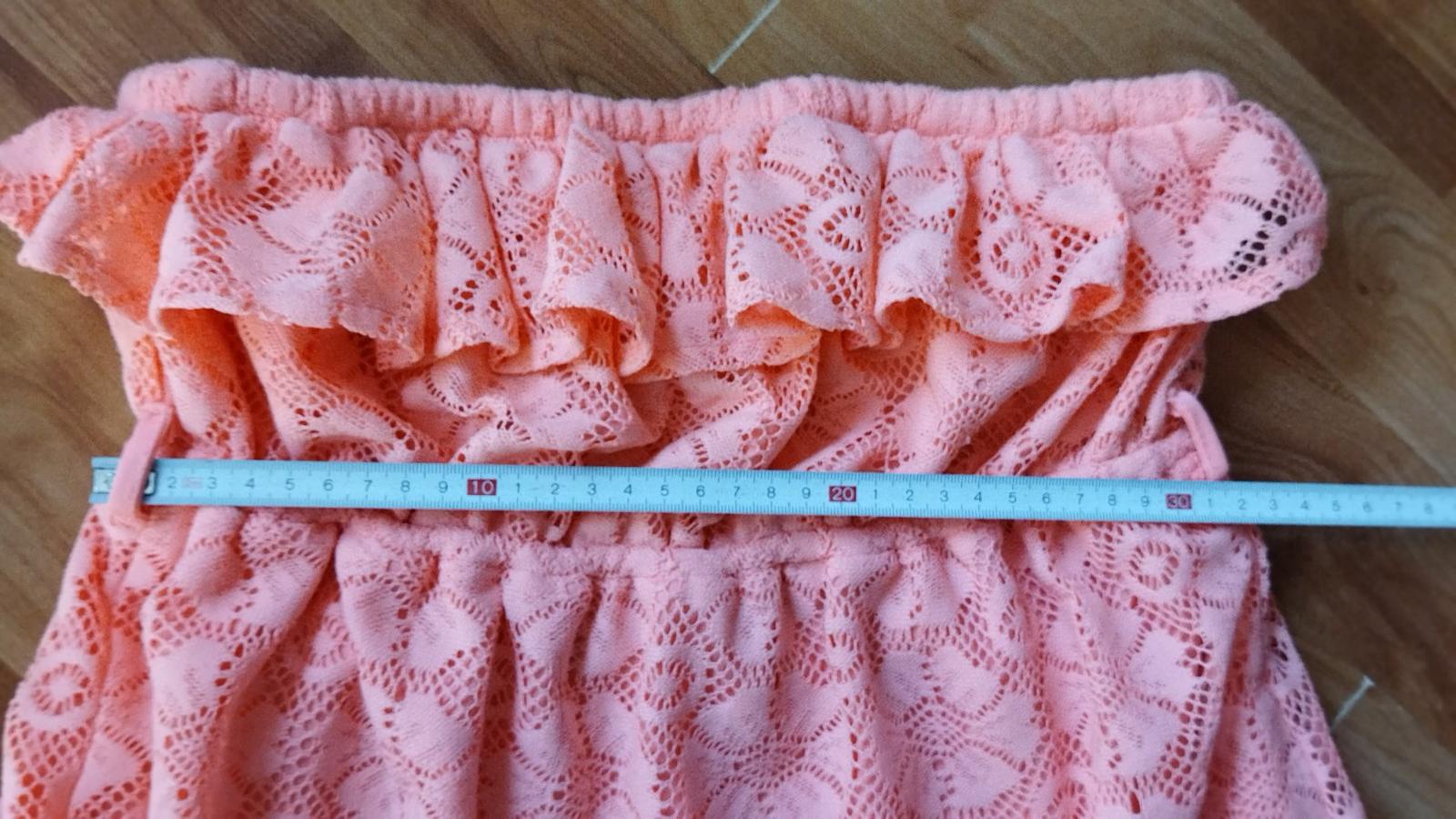 Predám krásne minisaty ,veľkosť písaná M no určite aj S, farba je oveľa krajšia ako na foto neviem prečo nezachytilo...niečo medzi lososovou a neónovo oranžovou .Vhodné aj na plavky. Miery pod prsiami na foto sú v kľude.Vrch je háčkovaný,spodnicka saténová.