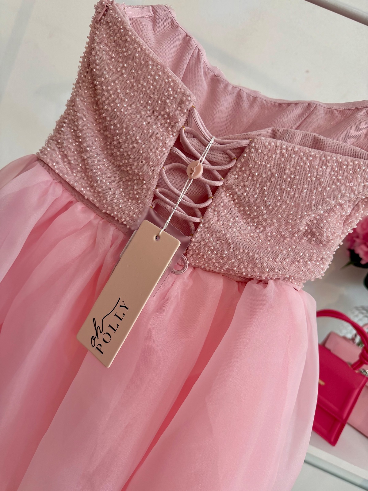 Exkluzívne midi šaty od značky Oh Polly v romantickom ružovom odtieni.