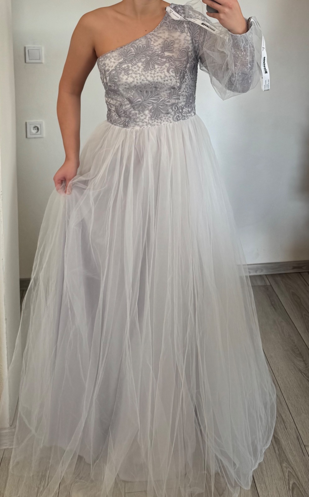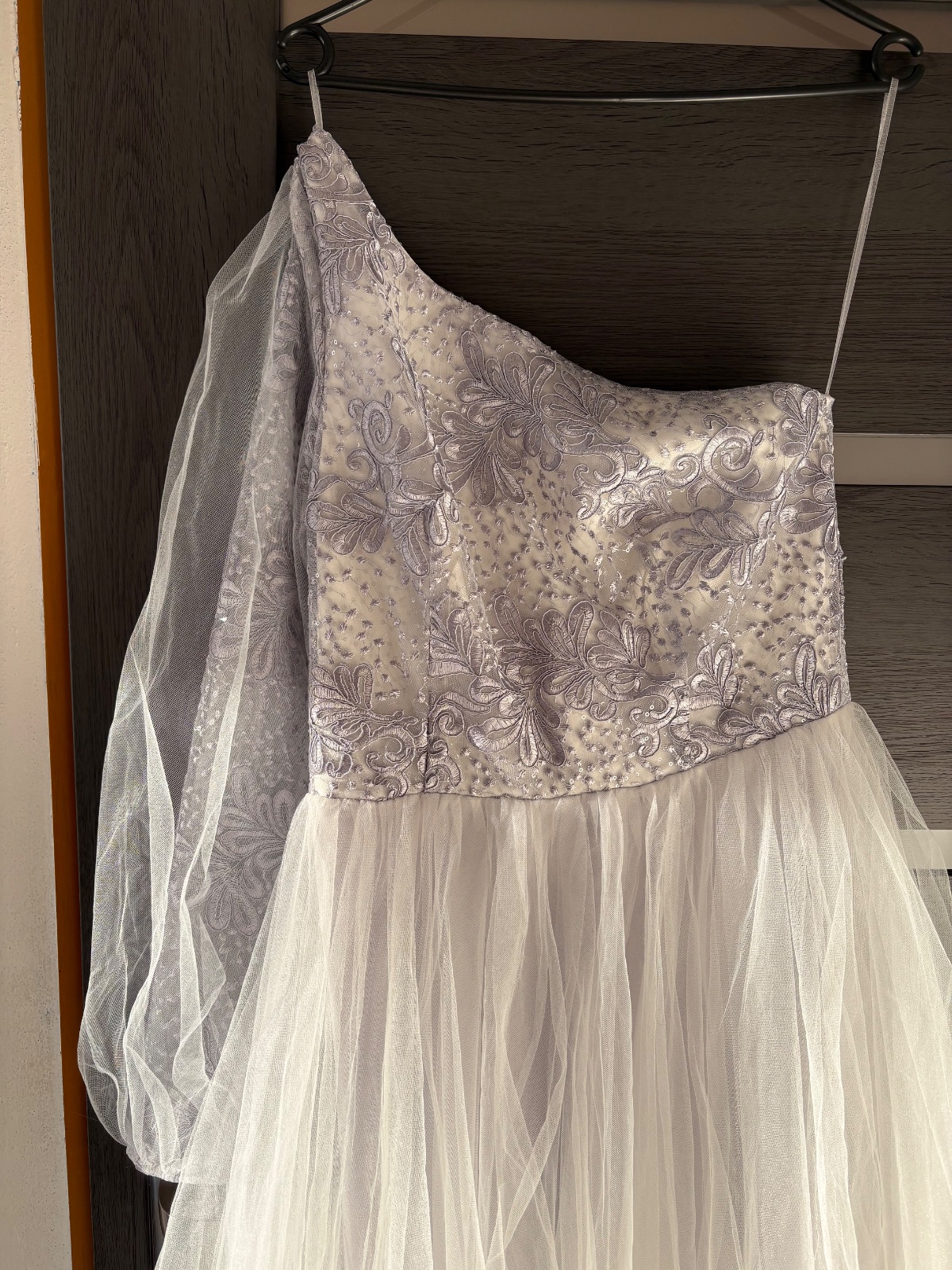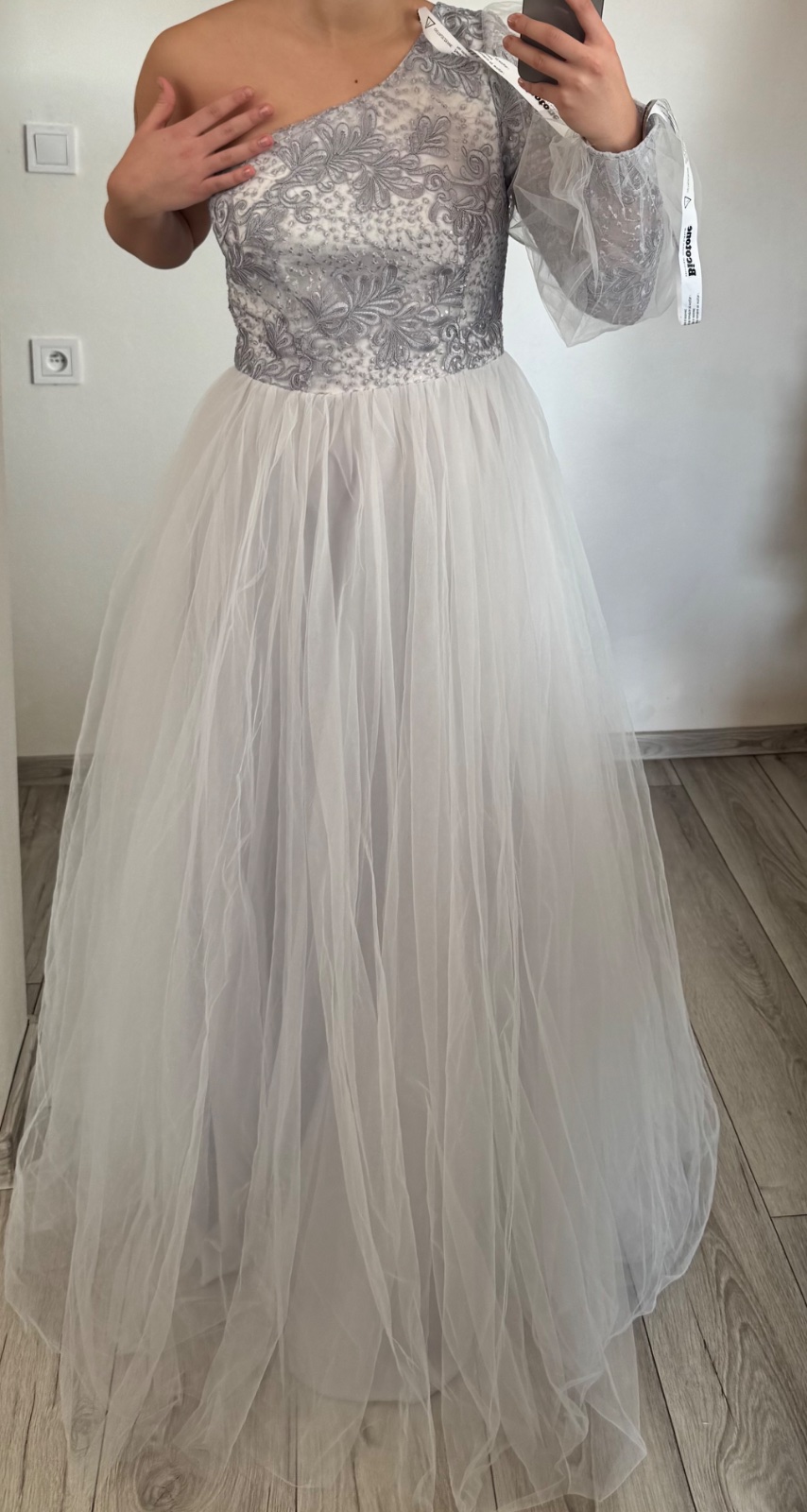 Šaty majú bohatú sukňu romantická krajka a zahalená ruka do tylu - tieto neprehliadnuteľne krásne šaty. Na spoločenskej udalosti sa za vami ponesie závan noblesy, elegancie a ženskosti. Vzadu sa šaty zapínajú zipsom. Šaty sú nové s visačkami