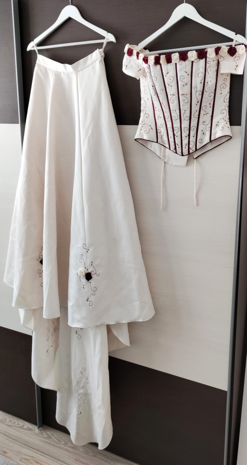 spoločenske šaty Maria Magdalena (Polsko), žakart, vel S/M - korzet vzadu šnurovanie, bočna dl 23, dlžka v strede 32 - sukňa pas 35, dl 105 spodnica,dl 111 vrchna latka, - štola...