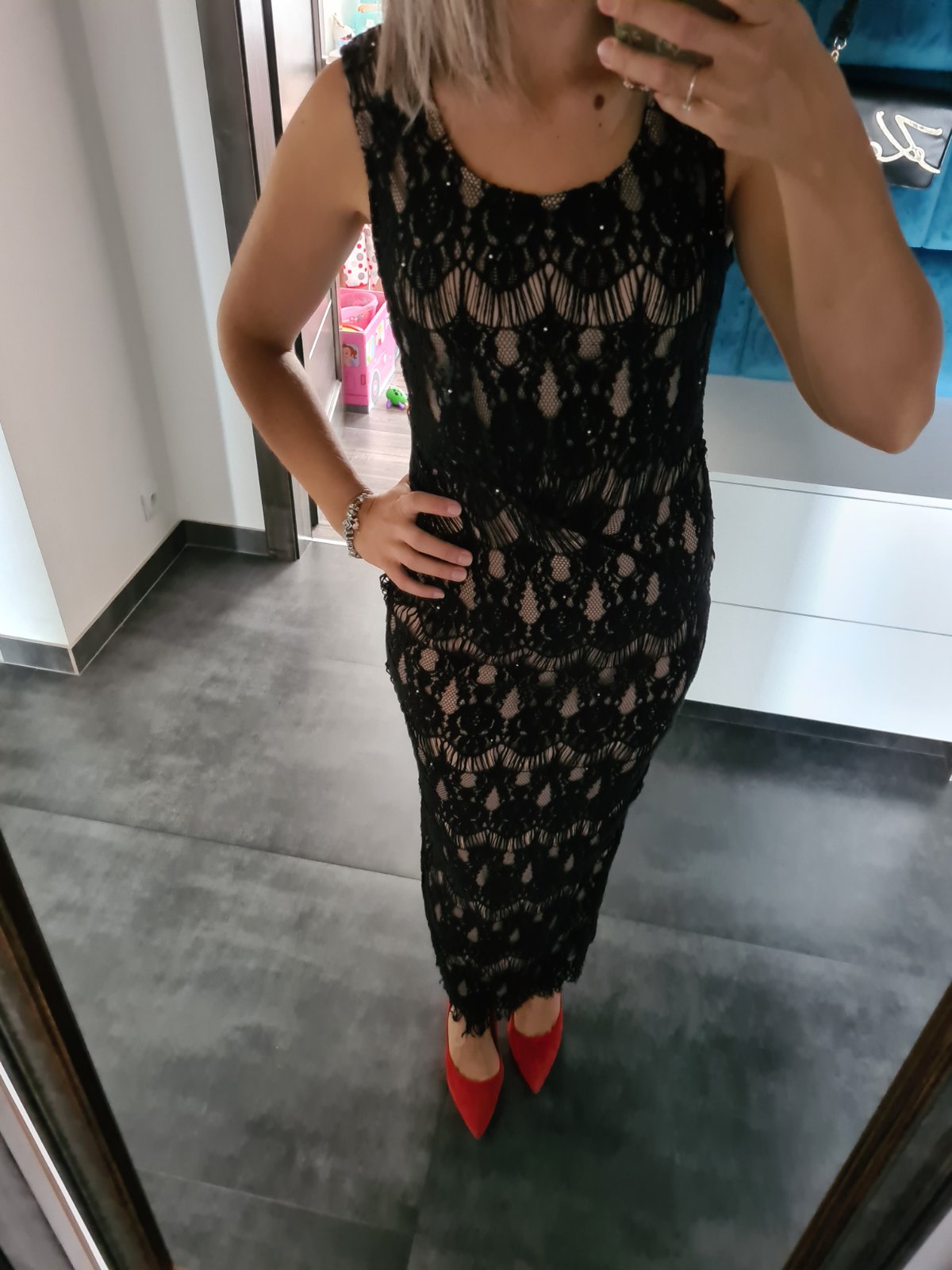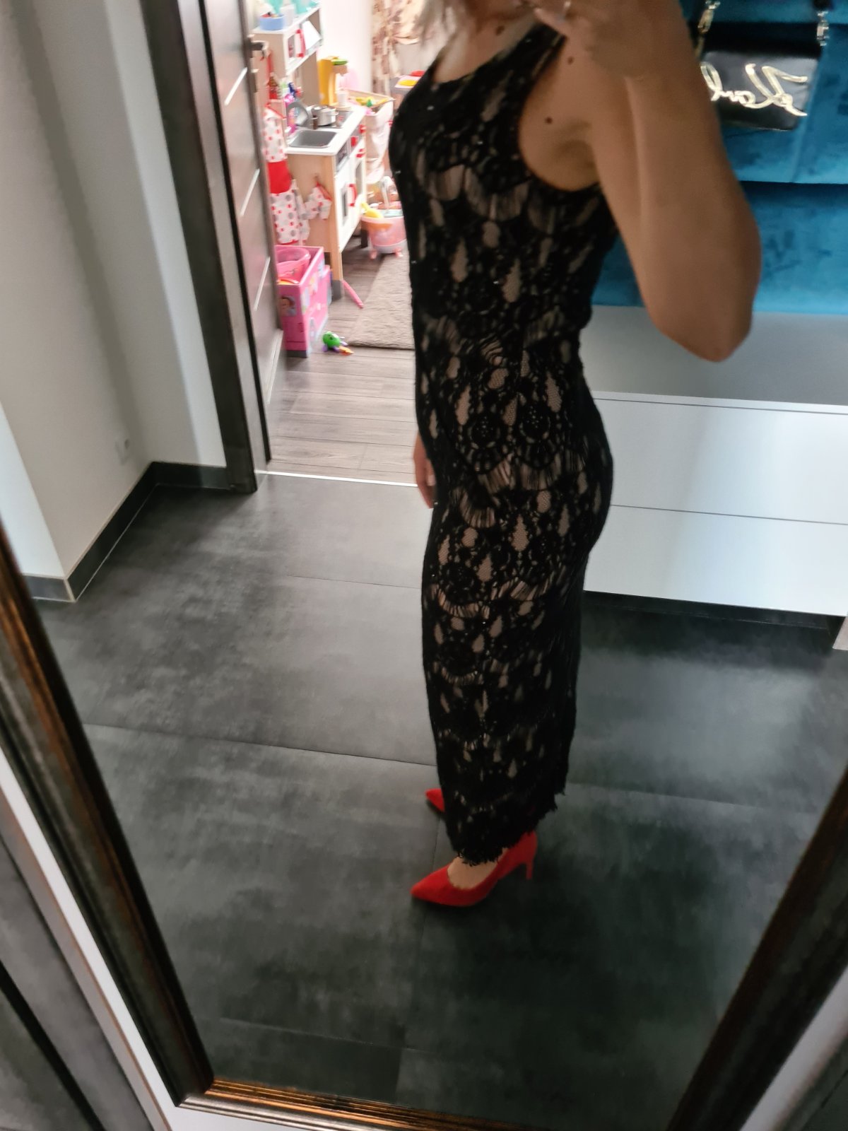 Čipkované spoločenské dlhé šaty S/M