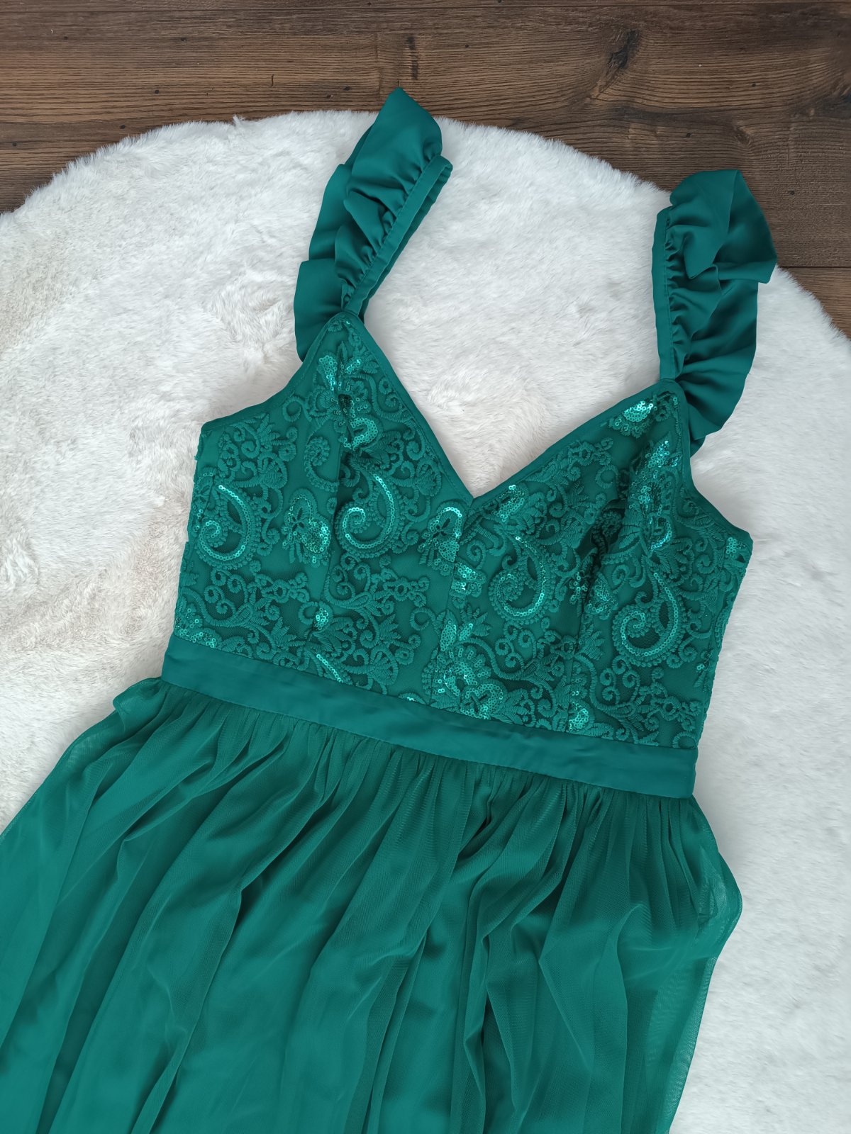 Smaragdového zelena Asymetrické saty Rafinovaný strih Top stav 2989K98888887