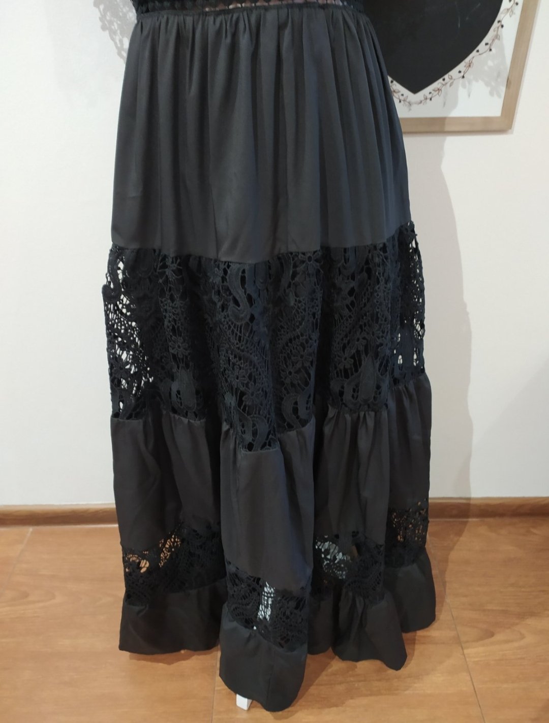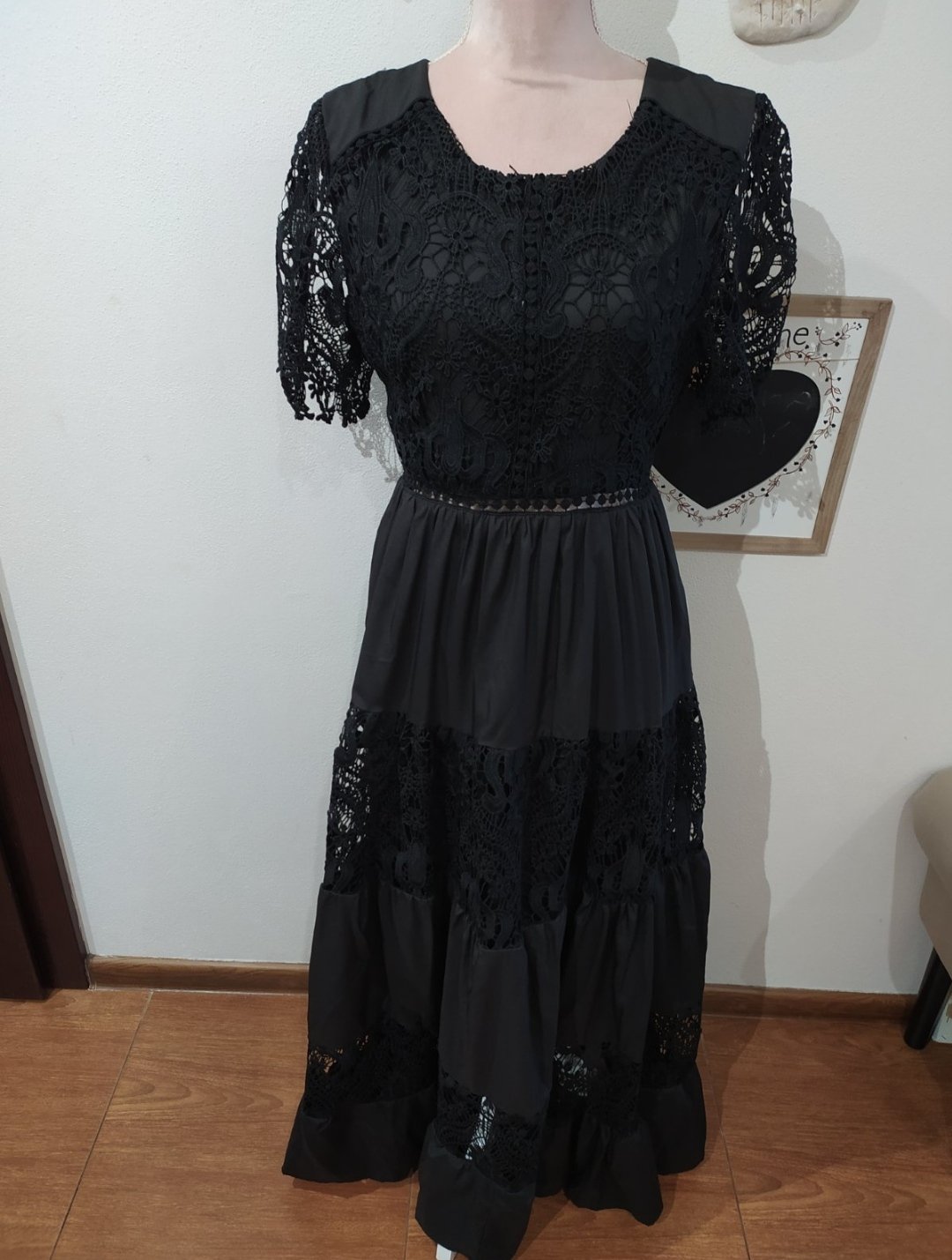 Krásne šaty kombinované s krajkou, dĺžka maxi .Vhodné aj na príležitosť,zapínanie na zips cez chrbát.Uvedena veľ M/L