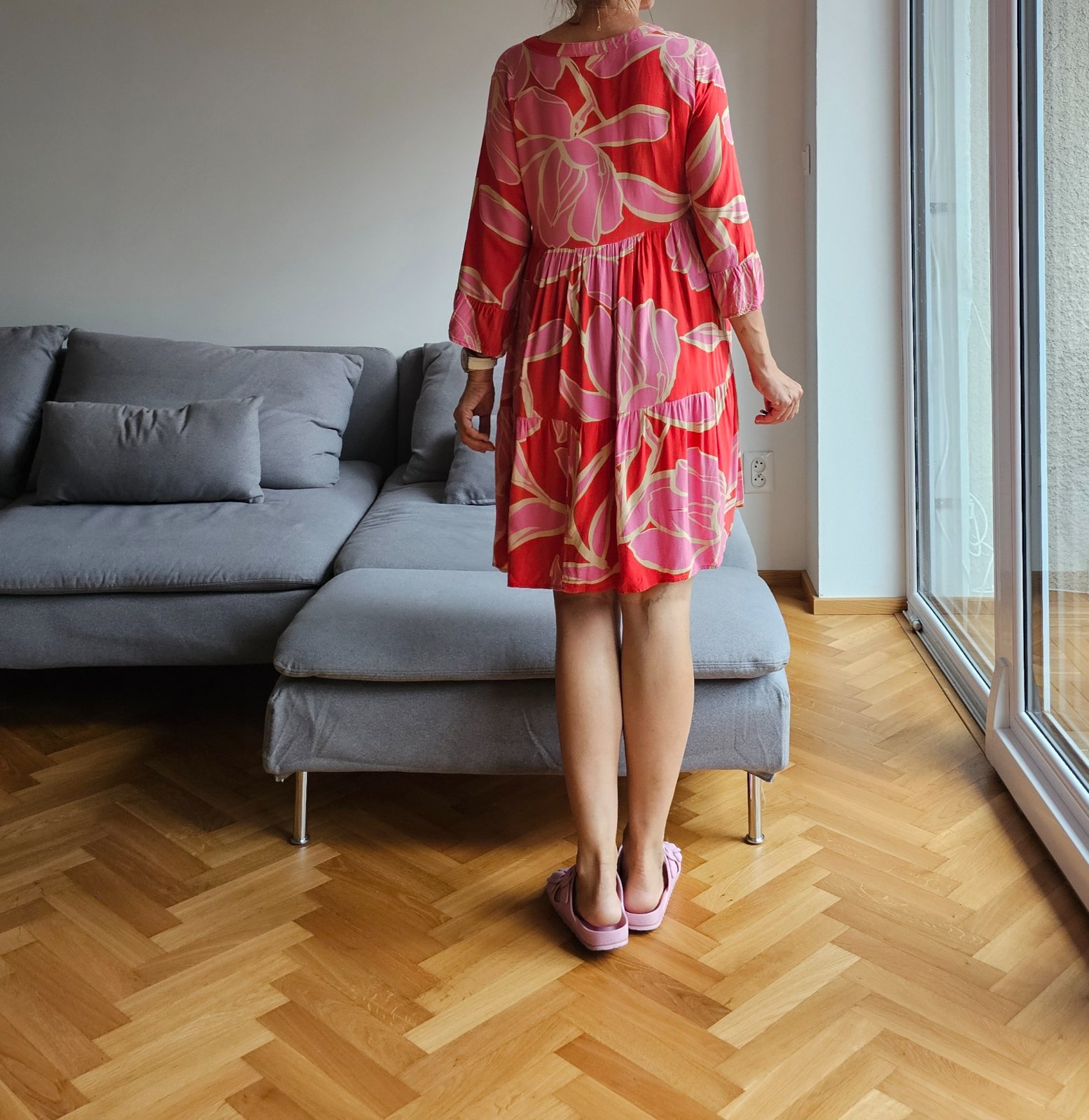 Krásne šaty v energickej kombinácii farieb ružová a červená. Ľahká viskóza vhodná na leto. Ľahké ako pierko.