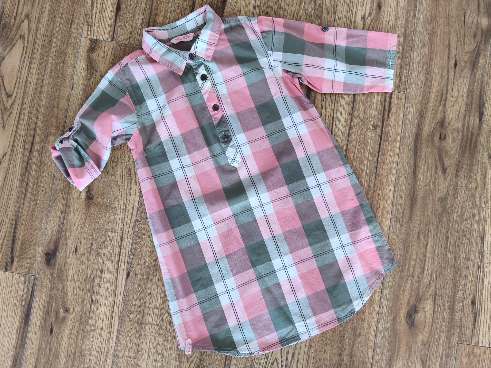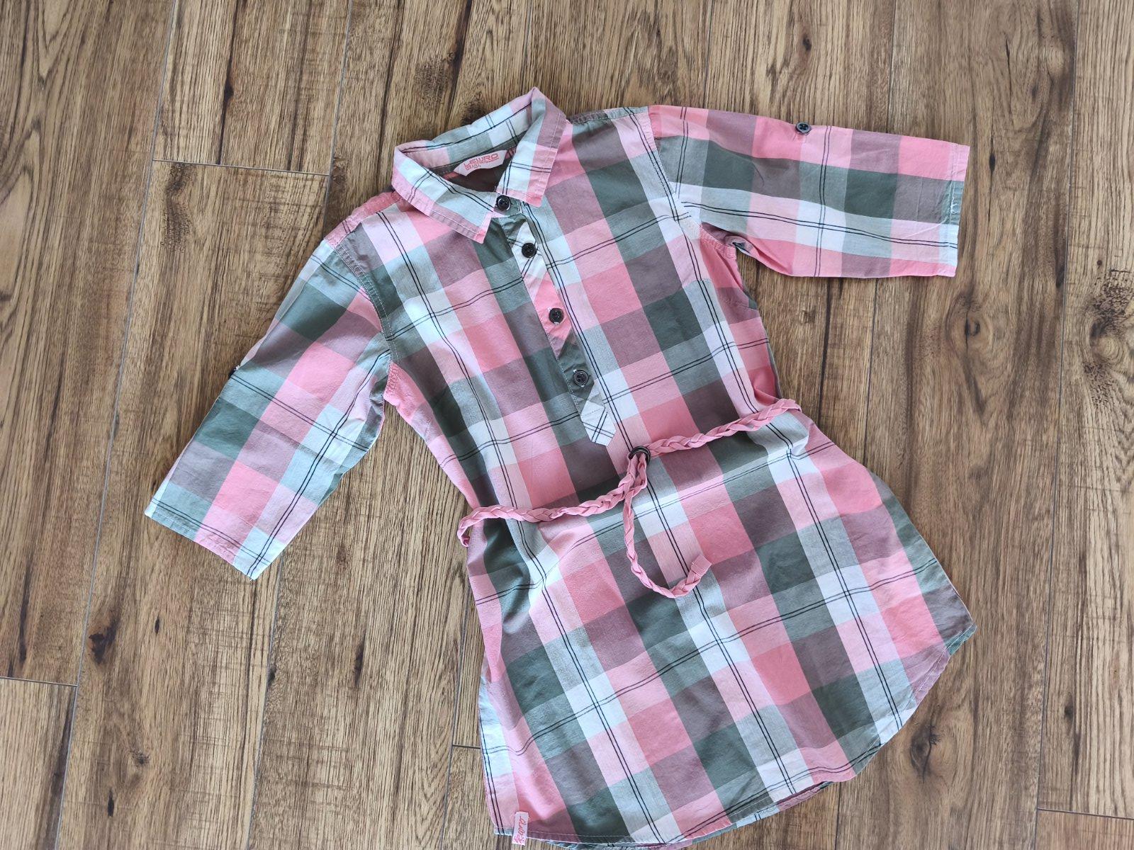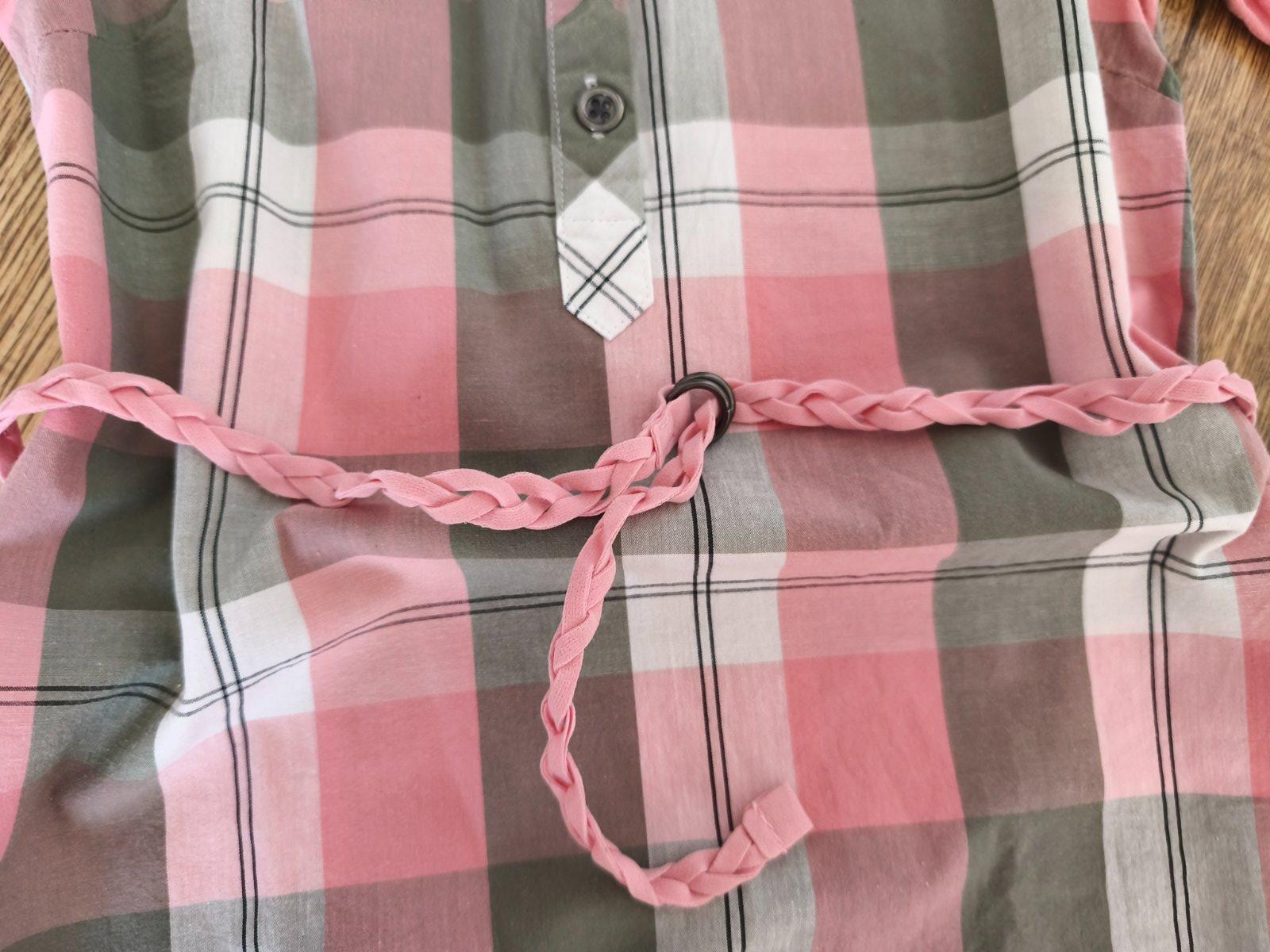 Bavlnené parádne šaty, bez poškodenia, krásne sa točia, nosili sme vo velkostiach122 a 128,preto som zaradila medzi velkosť 122. Celková dĺžka je 64 CM. Od hora po prestrih 30 CM, rukáv. Od krku 3...