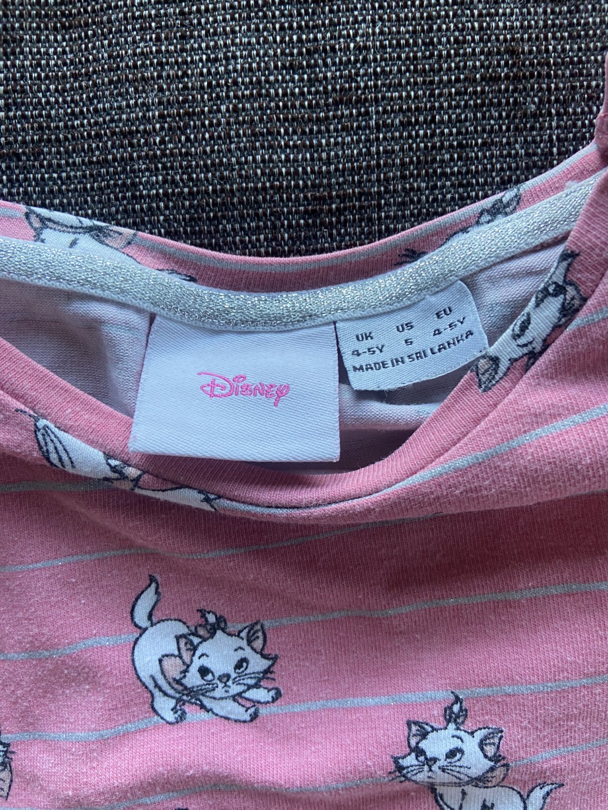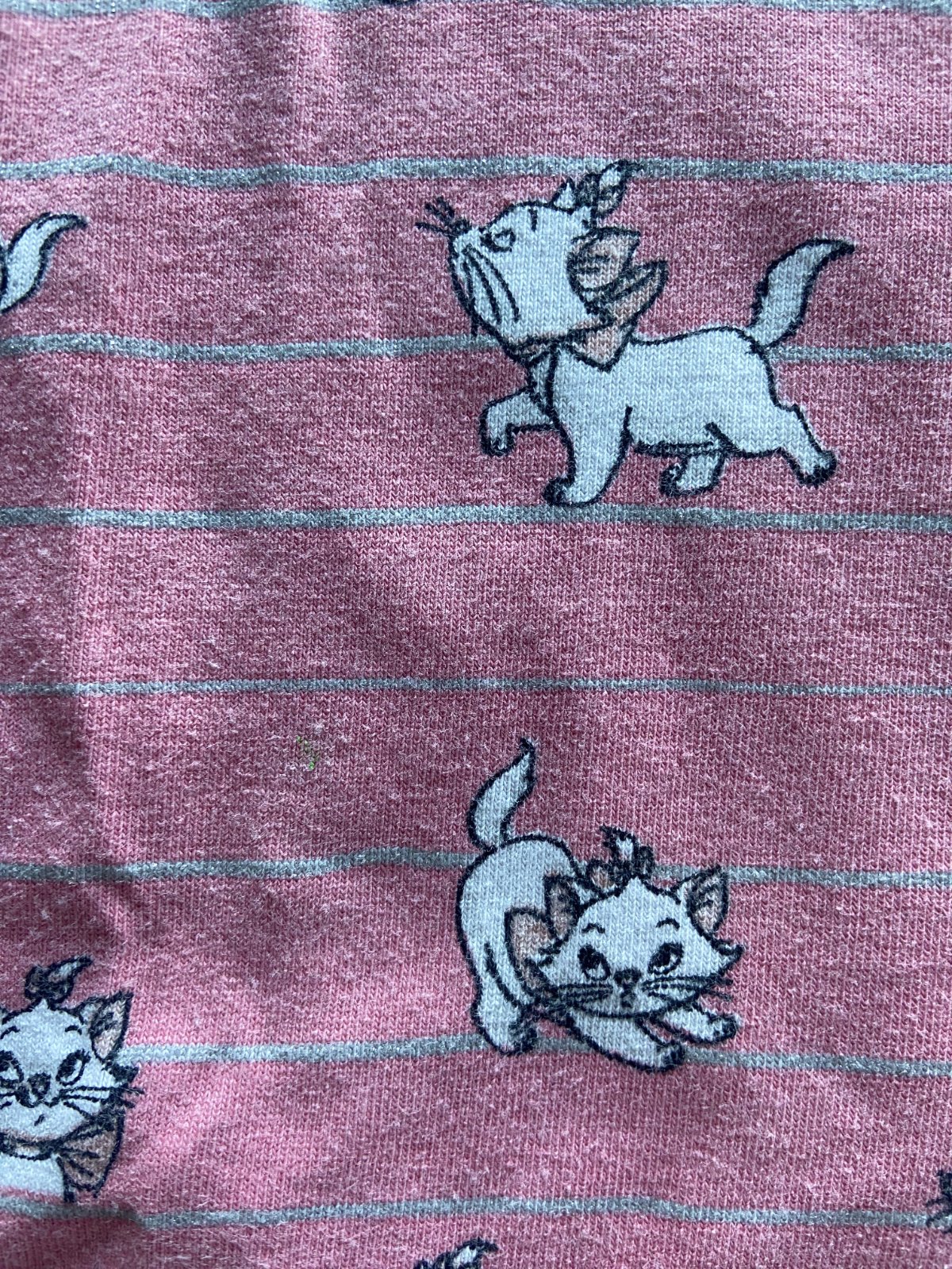Veľlmi, veľmi pekné šaty pre fanúšičky Aristokočiek :) Je na nich malá Marie a moje baby ich milovali :) Sú veľmi vkusné a tie sivé pásiky sú vlastne strieborné s trblietkami. Sú vo vľmi peknom stave, nosenie vidno len minimálne, bez dier a fľakov. 100% bavlna. Cena bez pošty