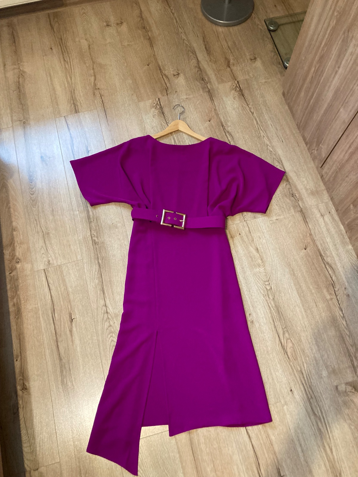 Krásne raz oblečené šaty na svadbe . Veľkosť je 42 ale môžu byť aj na 40 veľ. Pekne sadnú na postavu . Farba - magenta . Pôvodná cena 110€ . Teraz 80€.