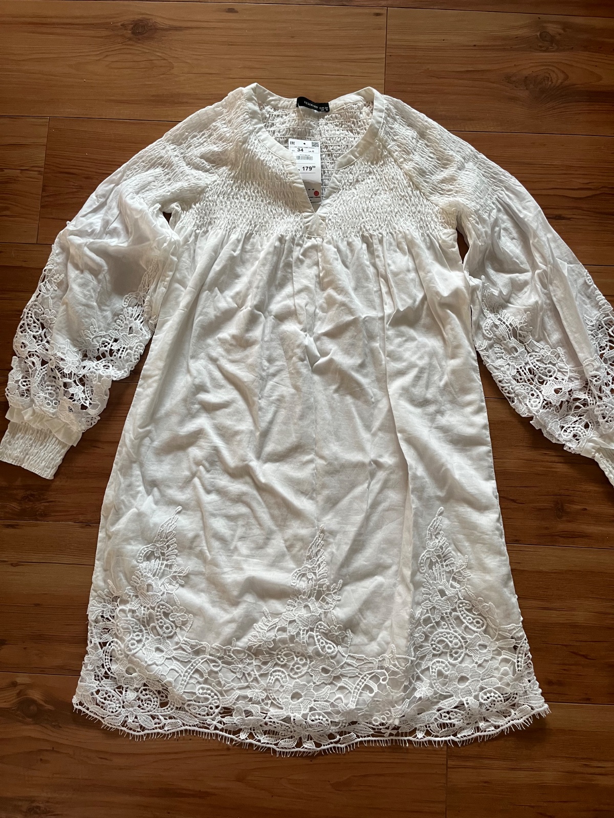 Predám krásne saticky bielej farby veľkosť xs-s, nádherne krajkove rukávy aj lem šiat, príjemný ľahký materiál, nenosené, nestíham vynosiť PC 44,90€