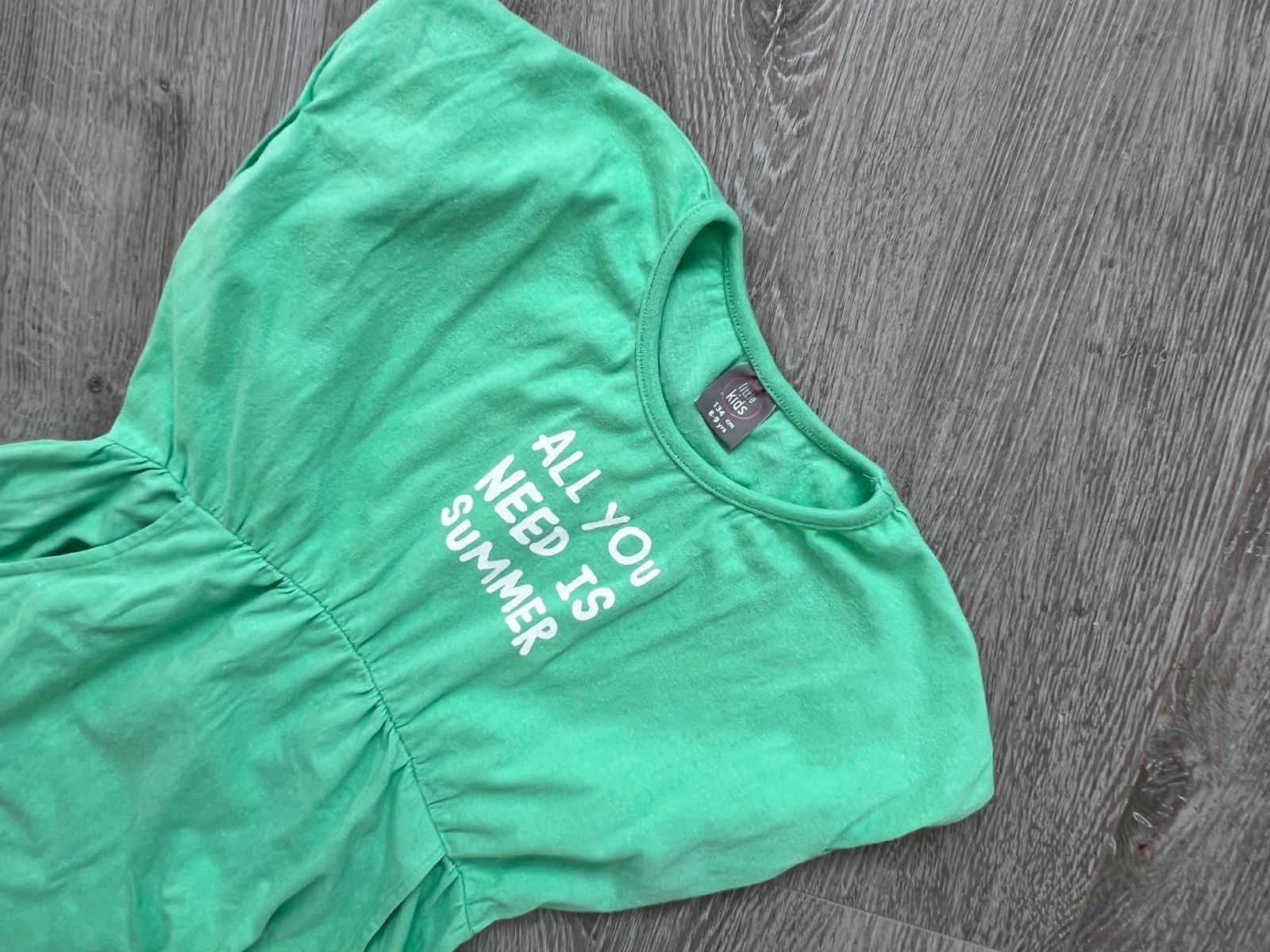 Dievčenské letné šaty ,farba svetlulinka zelená kombinovaná bielými guličkami, viažu sa okolo krku,majú holý chrbátik. Super stav.