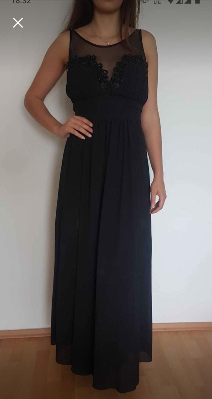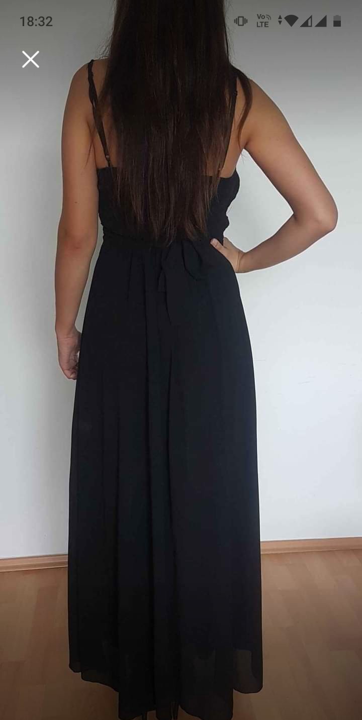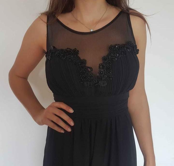 Veľmi pekne šaty čiernej farby s drobnými trblietavými bodkami s rozparkom vzadu drahej značky pôvodná cena vysoká predávam za zlomok ceny