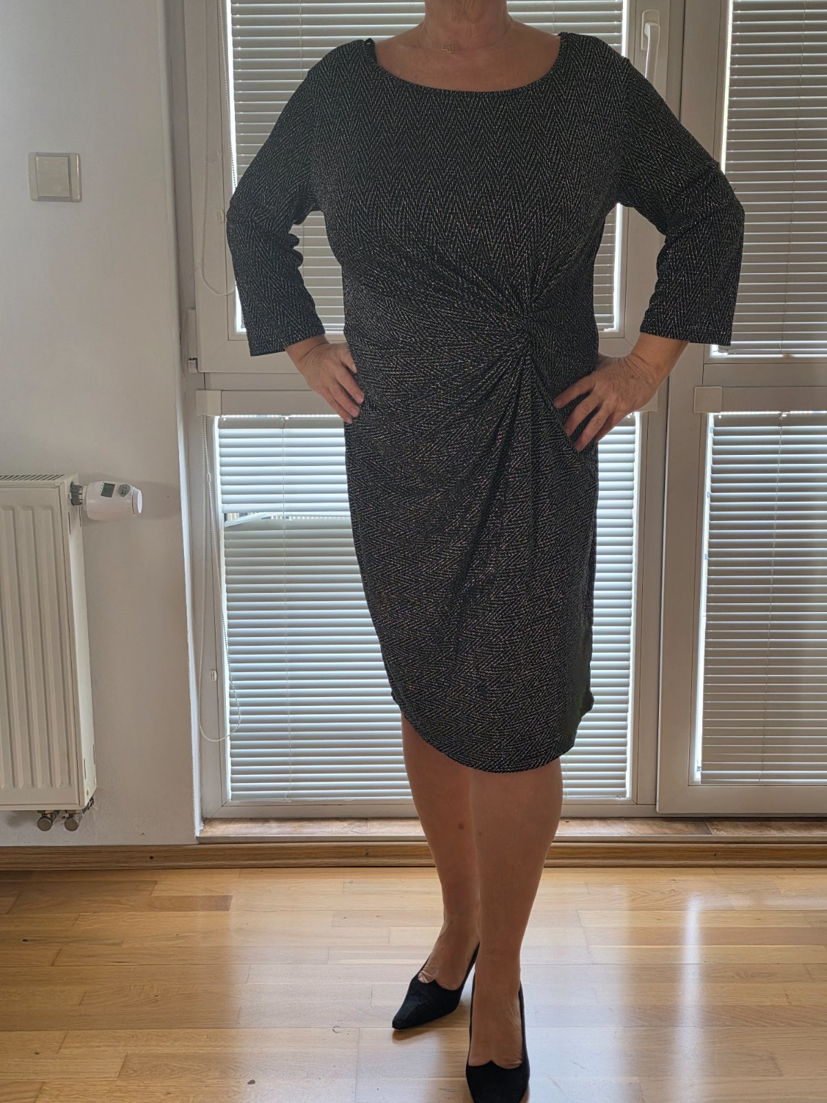 Tenké teplákové šaty Ofelia vel. XXL Celková dĺžka 101cm Šírka cez prsia 2x55 až 2x66cm max Pás na gumu, v kľude 2x41 až 2x57cm max Materiál pružný, štruktúrovaný - viď foto Zloženie 65% polyeste...