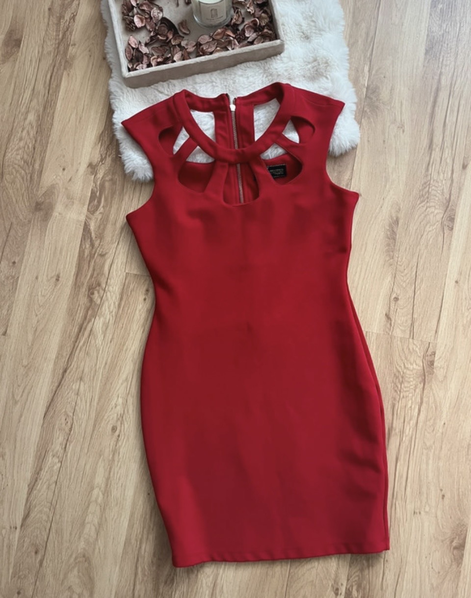 Krátke červené šaty vo veľkosti S/M. Šaty sú na viazanie,vďaka čomu si ich presne prispôsobíte na Vašu postavu. Vhodné na venčeky, redový tanec a iné.