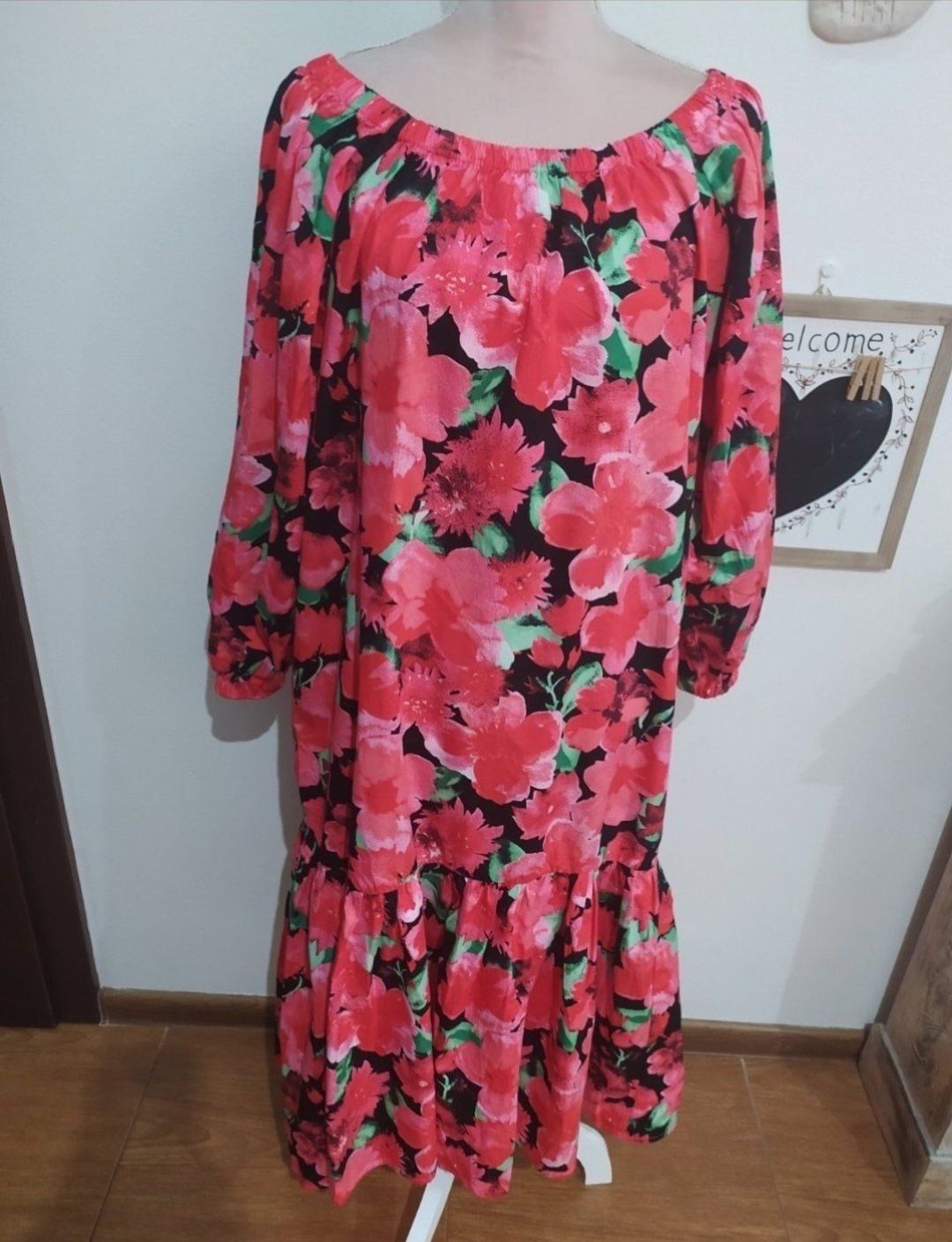 Voľné šaty,strihu Carmen,vo švíkoch vrecká.Predby diel o čosi kratší.Moznist nosiť voľné alebo s opaskom.predsj bez opasku ,ten pri šatách nebol