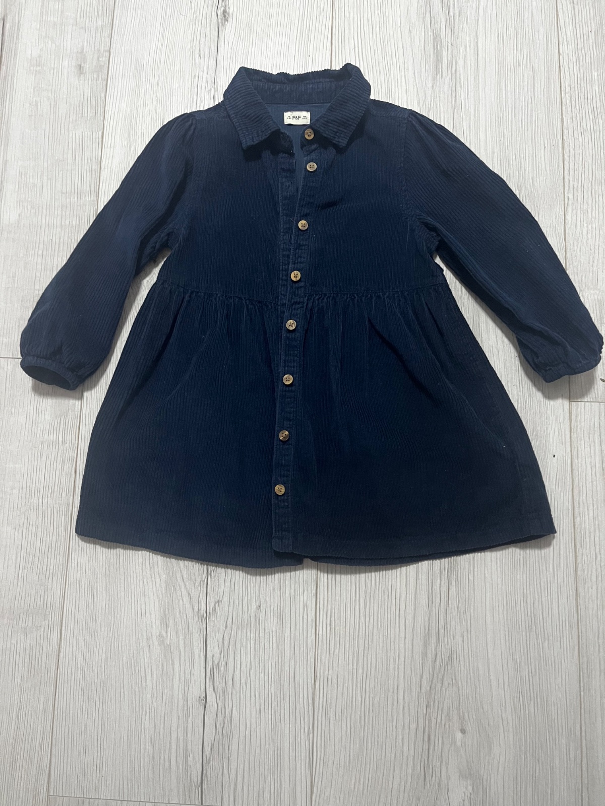 Predám vo výbornom stave tmavomodré šaty s golierom so zapínaním na gombíky, značka F&F, veľkosť: 110 (4-5 rokov)