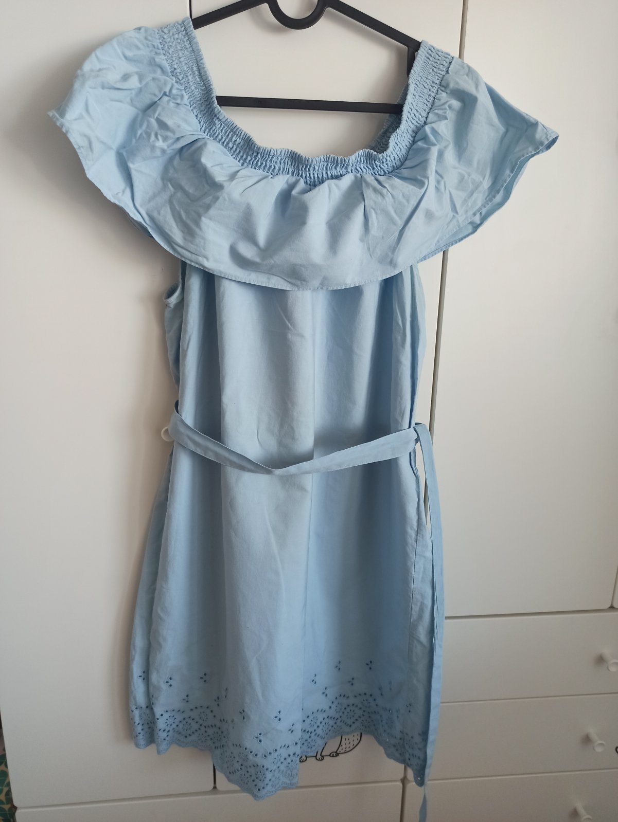 Letné riflové tenké šaty. 2 vrecká, vzadu hore zips, v páse guma, velkost 40