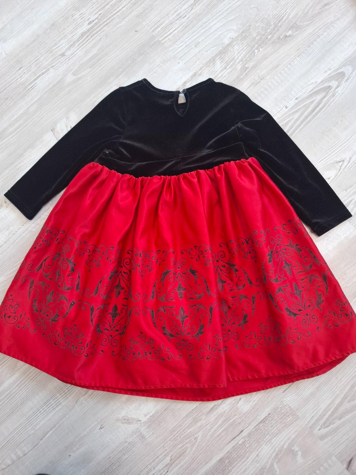Naše obľúbené červené saty s krásnym vzorom a jemným čiernym vrchom, veľkosť 98