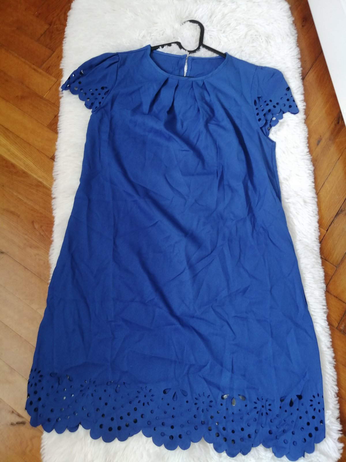 tmavomodre zimne pletene saty, velkost nie je napisana ale sedia tak na M, vyborny stav neviem ci boli niekedy vobec oblecene