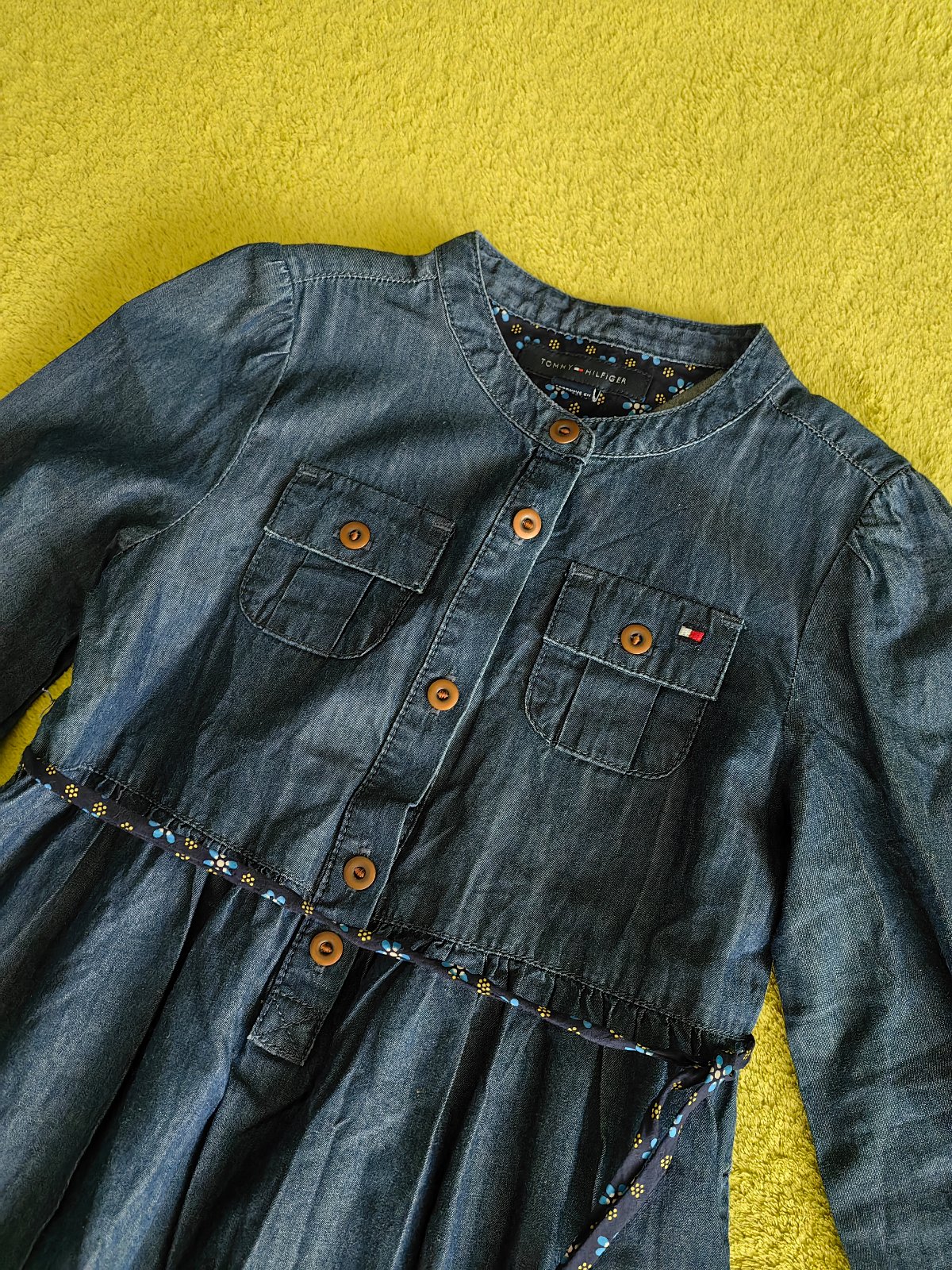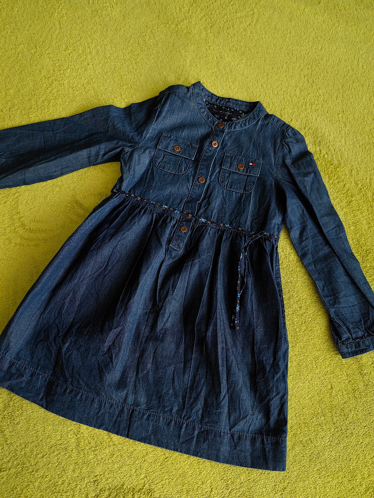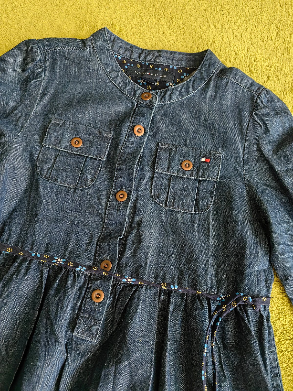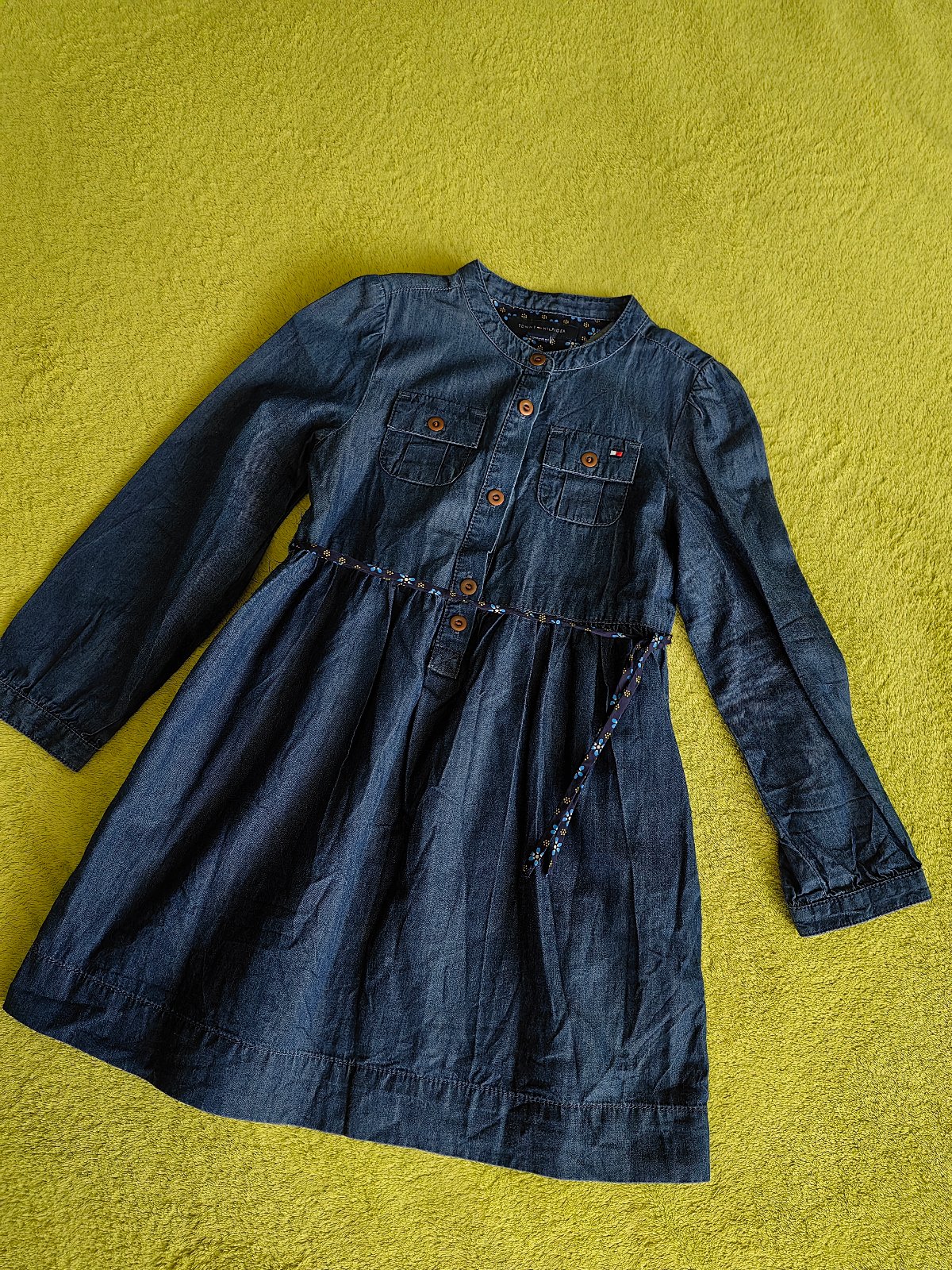 Raz oblečené šaty značky Tommy Hilfiger, v top stave. Originál. Písaná veľkosť na 4 roky, naša 104. Tenká a poddajná riflovina, zloženie 100 bavlna. Osobný odber v Bratislave, alebo poštou, poštovné nie je zahrnuté v cene.