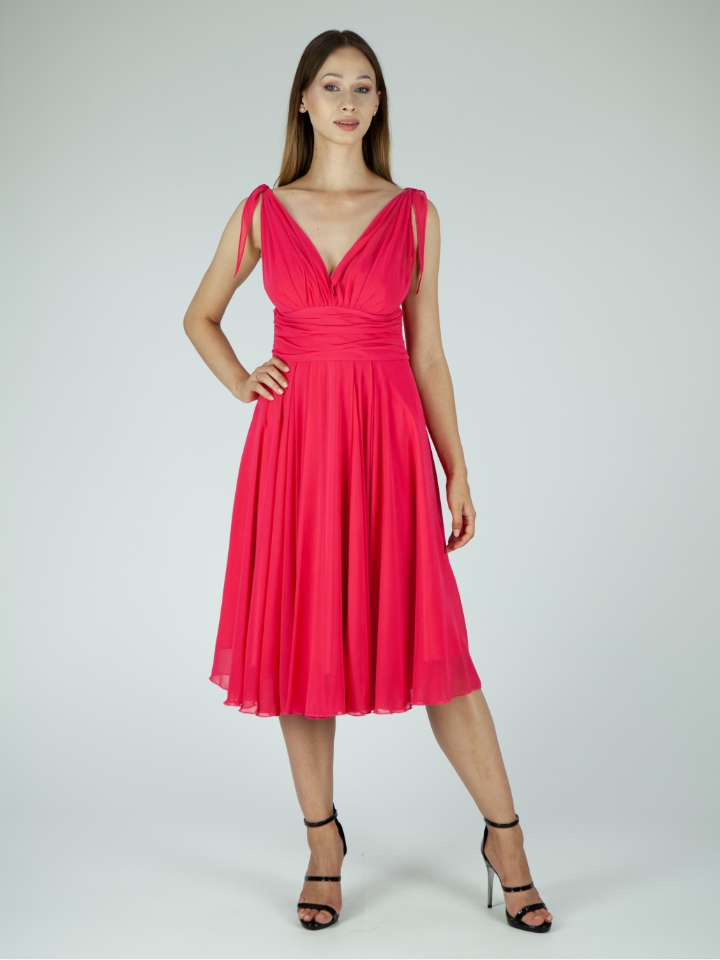 Krasne lahke spolocenske saty, suknicka sa krasne toci, nariasene, ramienka podla potreby sa daju uviazat. Niekolko vrstvova sukna... Veľkosť 40..NOSENE Raz.Dlzka pod kolena. . Kupovane v obchode so spolocenskymi satami. Ziadna cina a podobne.