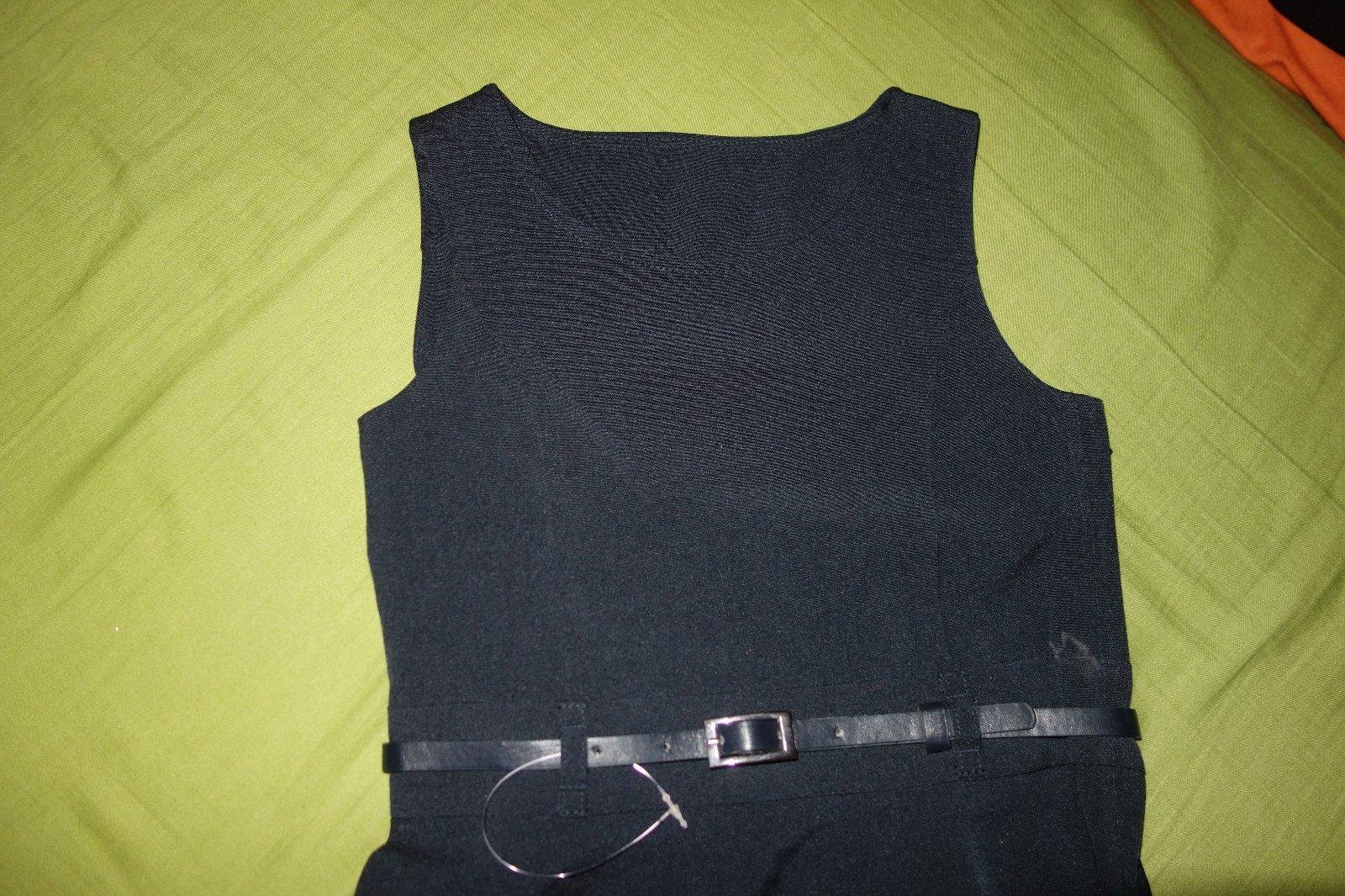 Pekne satocky- nove, bez visaciek- je to outlet. Opasok ma na kusku odlupenu kozenku (vid foto). Su take slusacke. Su tmavomodro-sive.