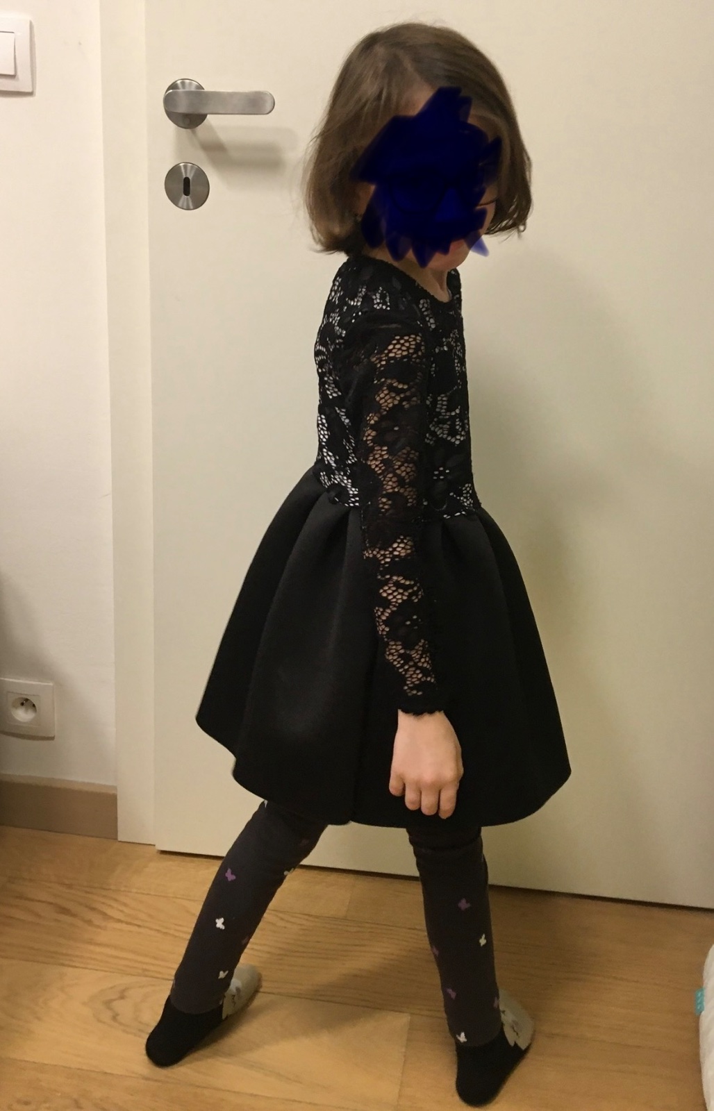 Šatočky boli oblečené len doma keď sa v nich dcéra predvádzala ale sme ich chceli použiť ako súčasť karnevalovej masky. Majú dva vymeniteľné opasky, striebormý a červený.. Majú krásnu čipkovanú hornú časť a taku pevnejšiu sukničku ako taký jemný neoprén.