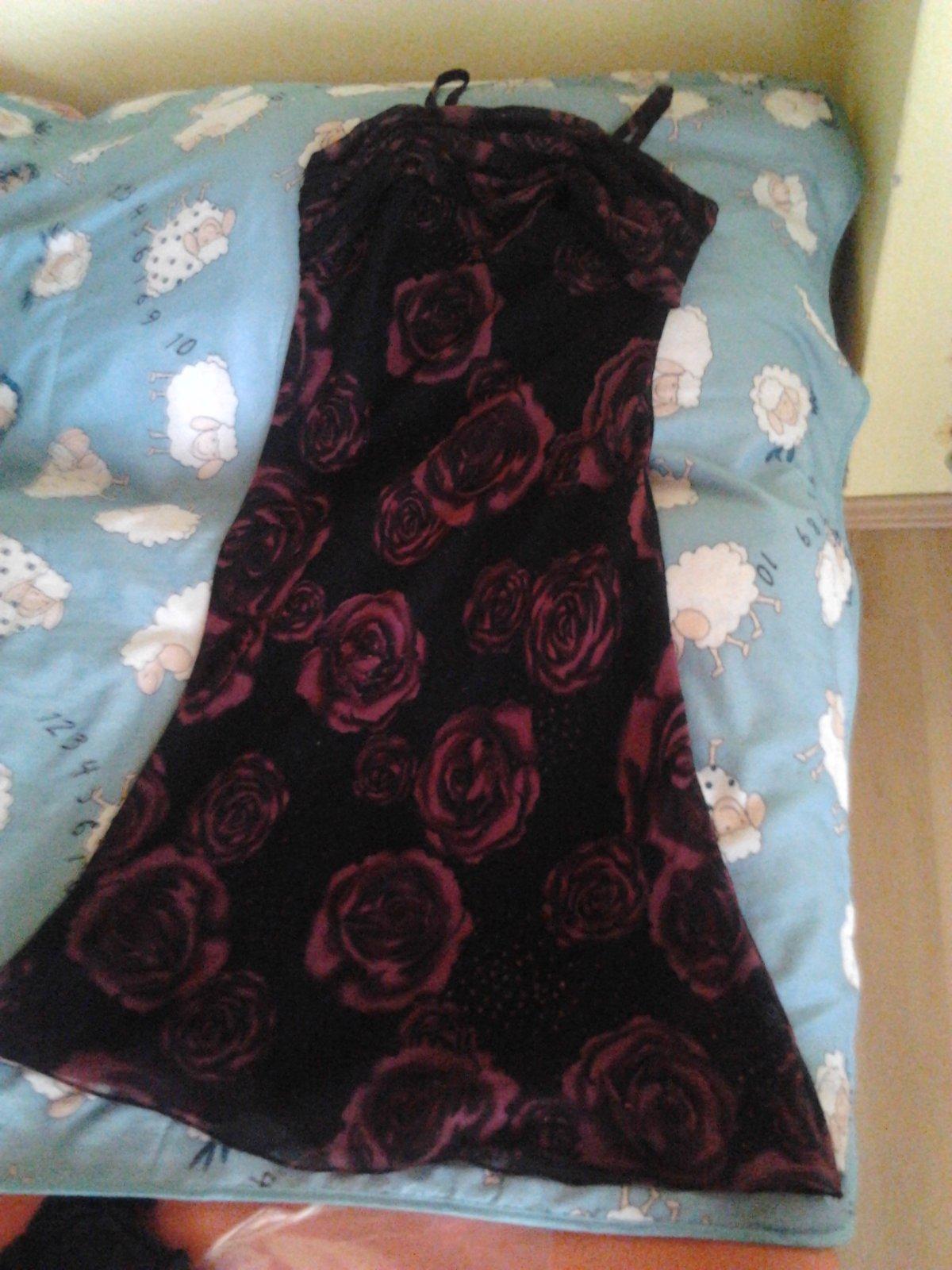 Šaty čiernej farby s bordovými ružičkami