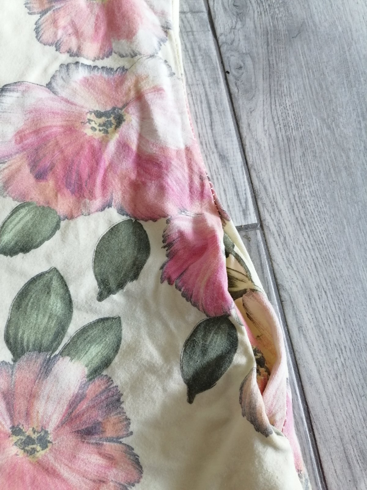 V peknom zachovalom stave. Ako je kvetinka je šedý nádych, nejde mi to preč. Dajú sa ešte vynosiť, nevidieť to veľmi, ku riflovke napr. A tak. Ináč sú super bavlnené. Po bokoch majú vrecka.