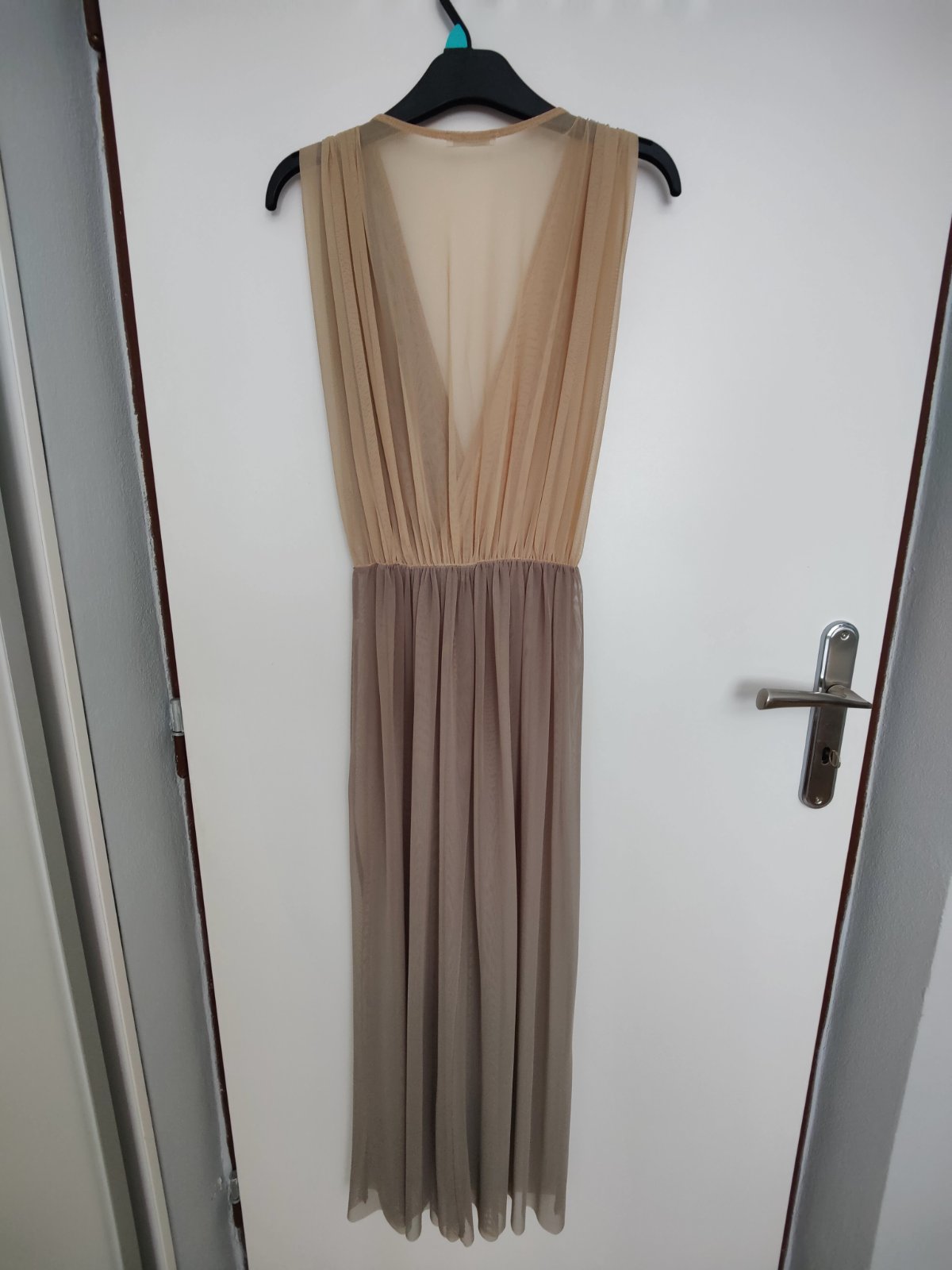 Sieťovinové šaty originál značky Zara, dvojfarebné béžová/sivá, dajú sa nosiť ako plážové šaty či ako vrchné šaty na rôzne veci (šortky, sukňa, legíny rifle ...), v páse guma. Rozmery: dĺžka 130 cm, guma v páse v pokojnom stave 30cm max 60cm. Môže ich kľudne nosiť aj žena/dievča s konfekčnom veľkosťou 38, sú voľného strihu. Skontrolujte si prosím rozmery.