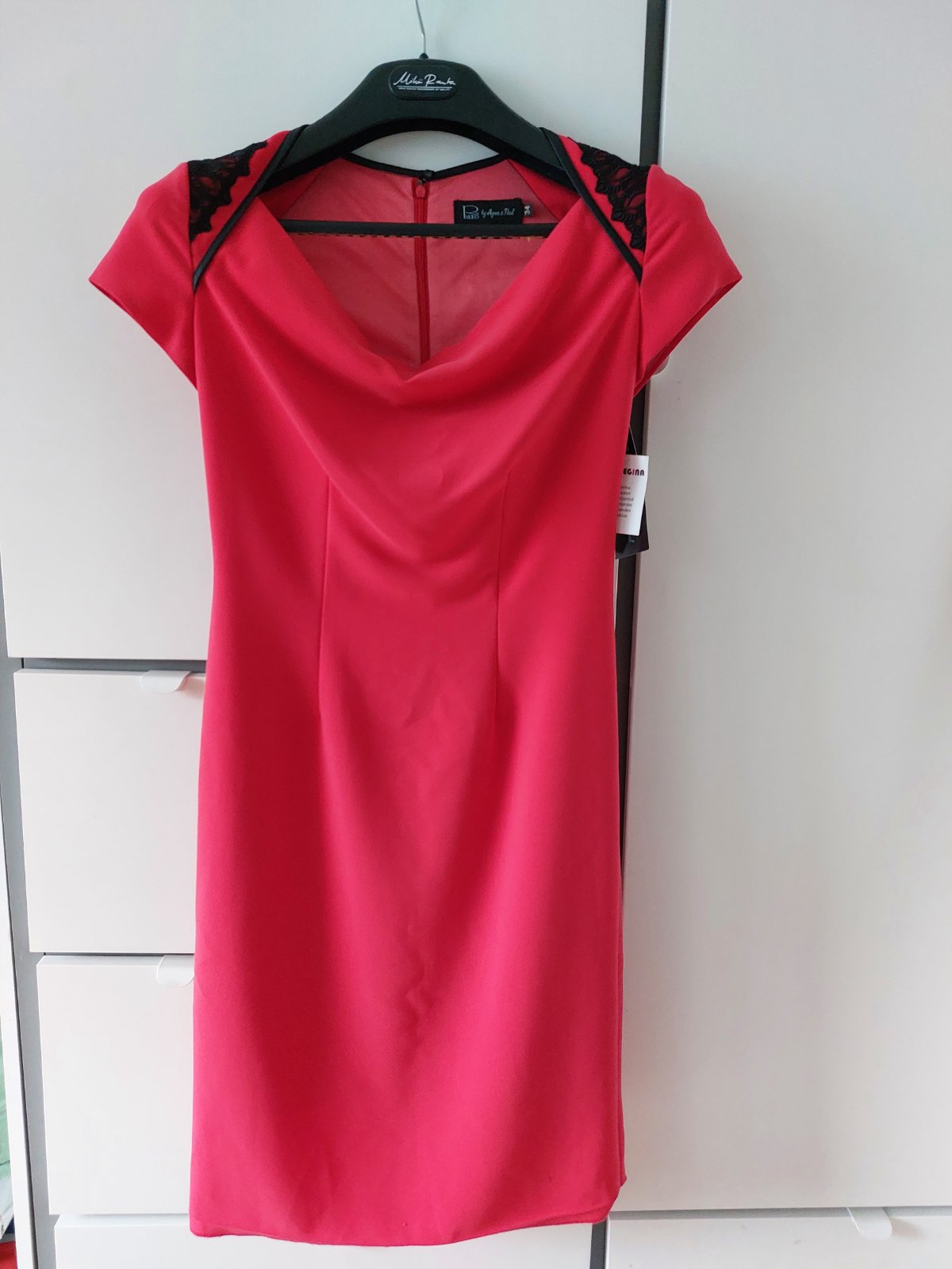 Posúvam šaty použité na fotení v ateliéri a ona pri večeri. Odporúčam len na xs a max 45-46kg sú dosť úzke. Vyrazná červená farba