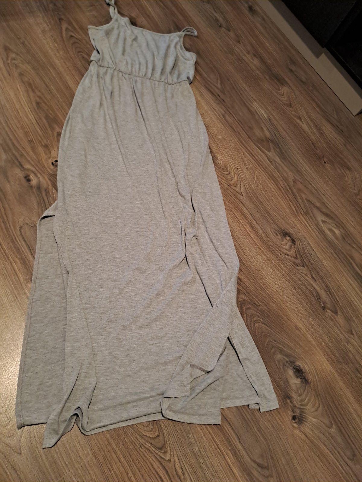 Kvalitné letné šaty sivo-béžovej farby, materiál 85% bavlna, 10% viskóza, 5% elastan, super stav. šírka v podpazuší 41-48x2 cm, pás 41-45x2 cm, boky 50-55x2 cm, dl. 147 cm dd 9