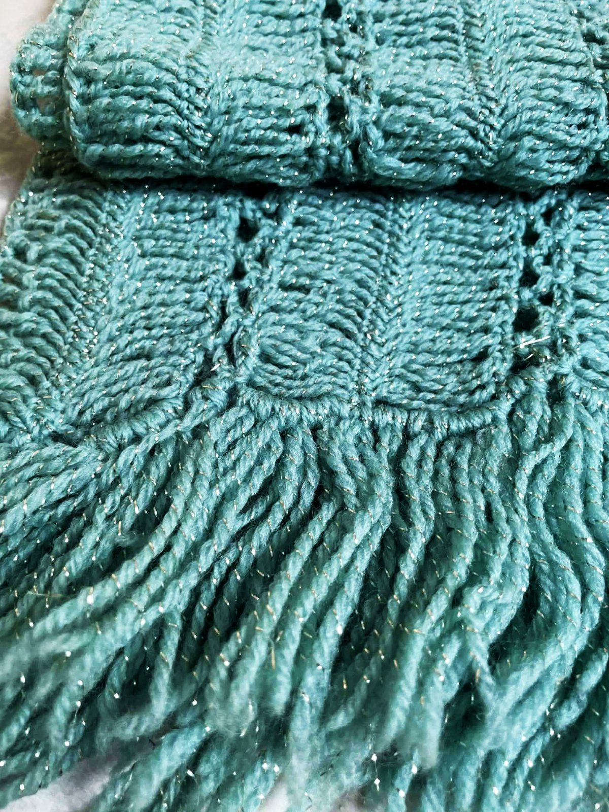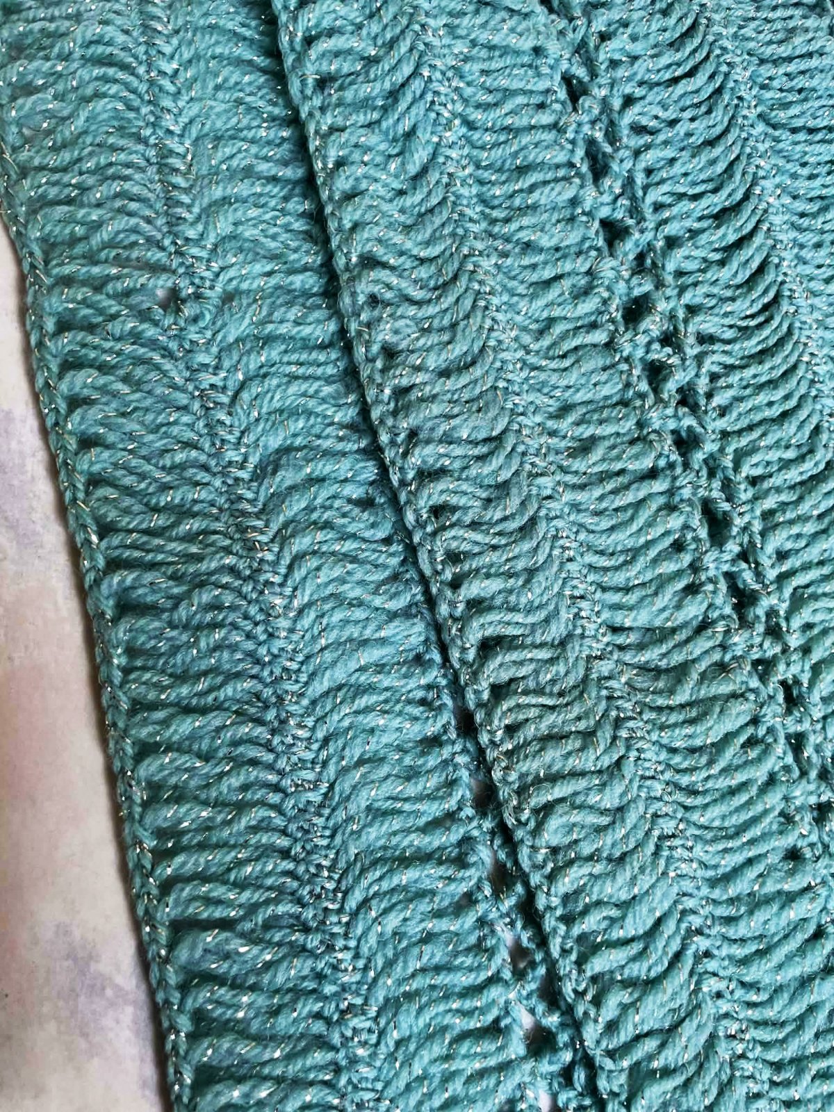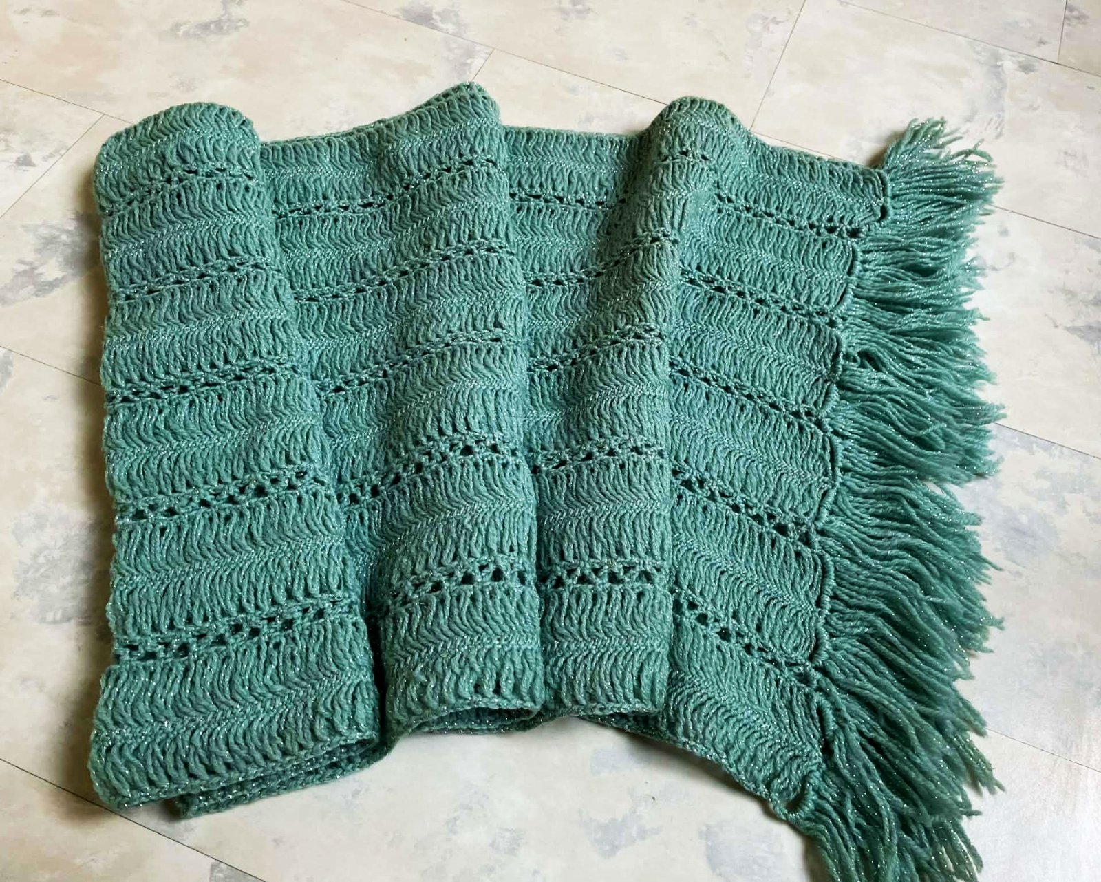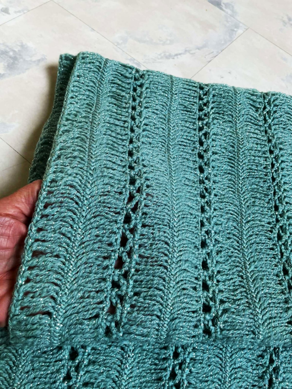 teplá vlnená štóla/prehoz na večerné šaty, v nevýraznej zastretej tyrkysovej farbe,v top stave - min. používaný, s veľmi jemne vtkanou striebornou lurexovou nitkou,rozmer : 45 x 180 cm