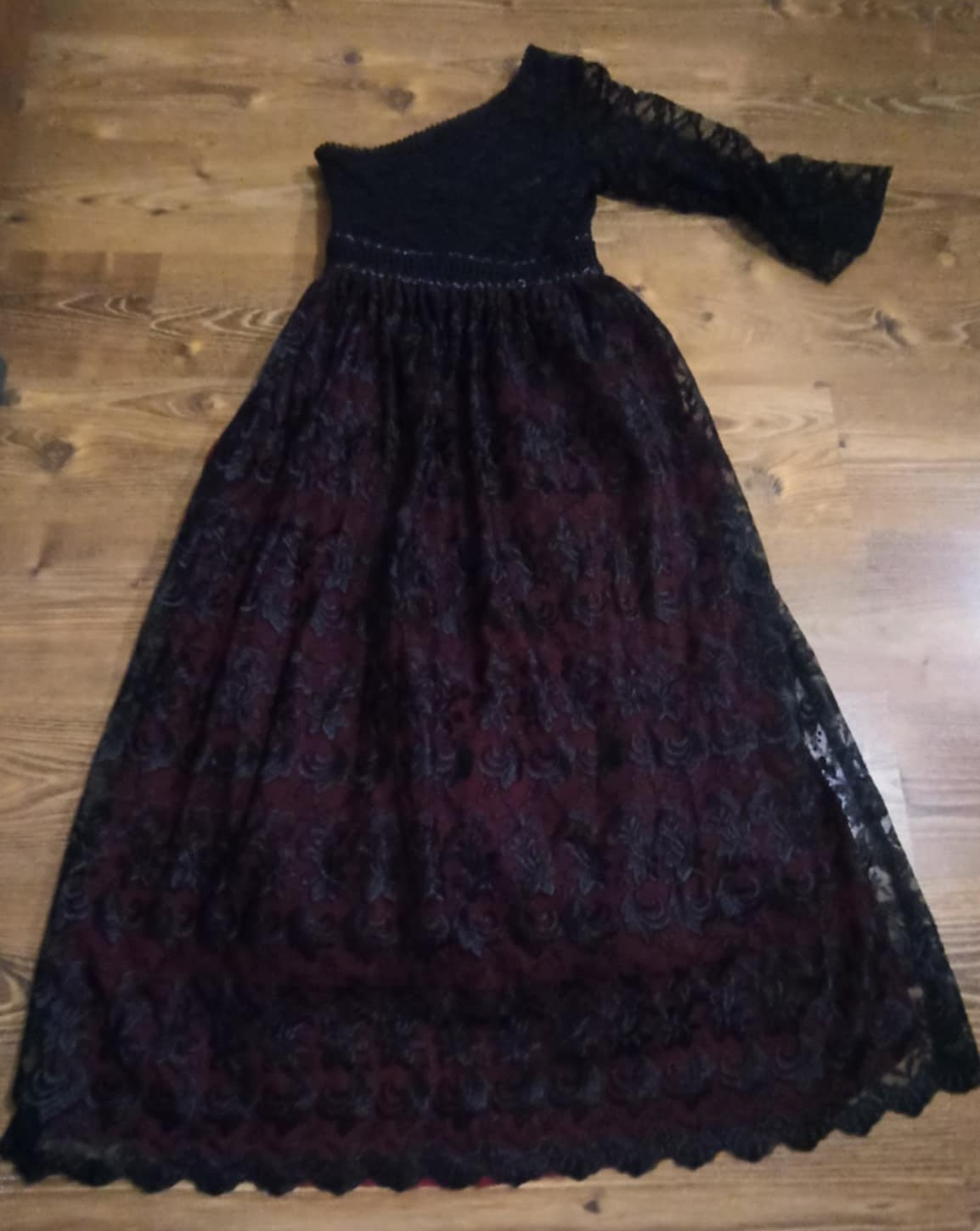 Bordová látka bola všitá pod krajku , dá sa odstrániť alebo vymeniť za iný odtieň, nám to vyhovovalo takto.