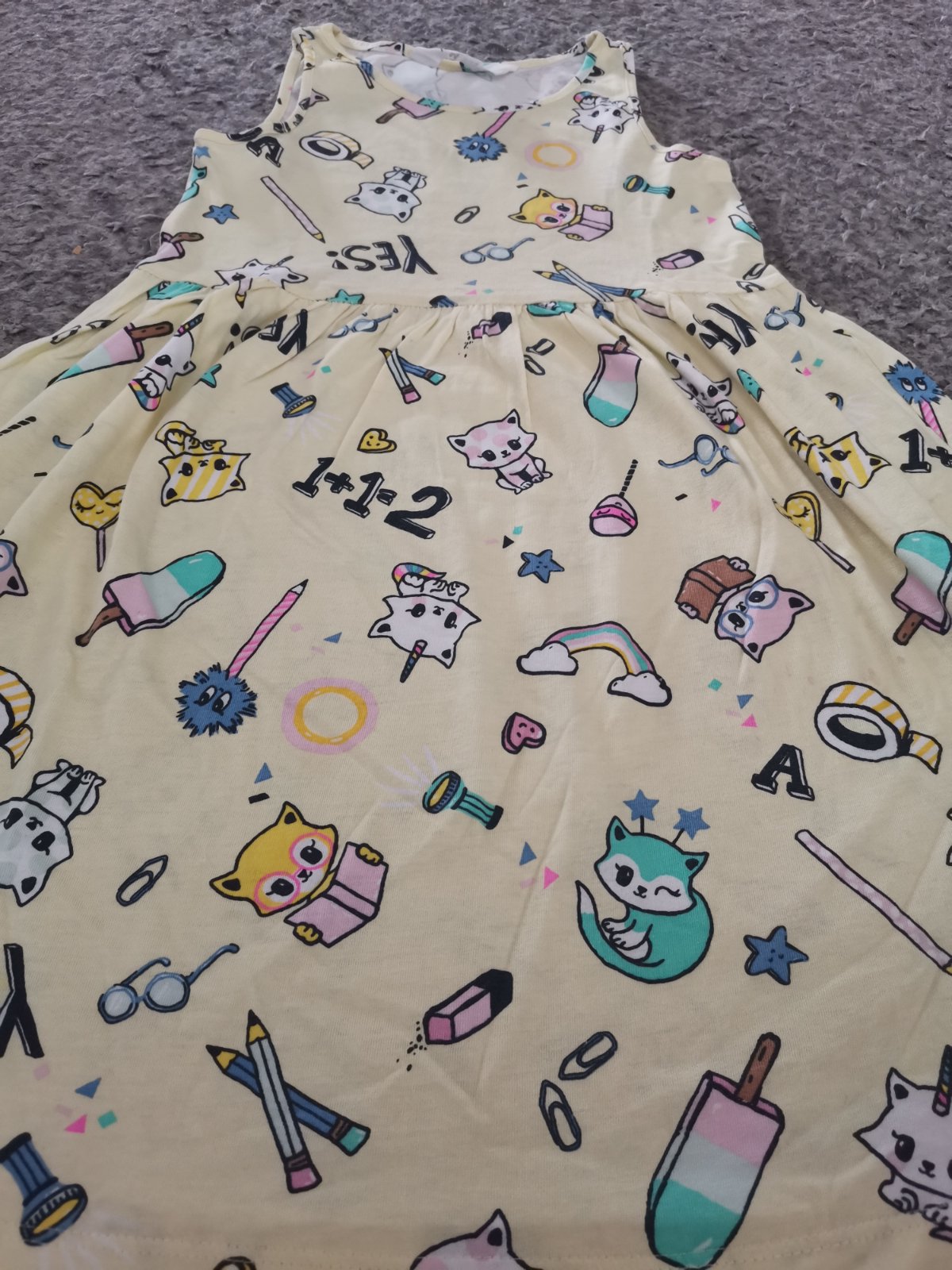 VVO-13 Dievčenská letná tunika z ľahkej padavej látky. Možnosť nosenia ako krátke šaty alebo ako blúzka k legínam. Materiál: polyester (mikrovlákno) VEĽKOSTI: veľ.92-98- 2-3r.- dlžka 45-48cm, p...