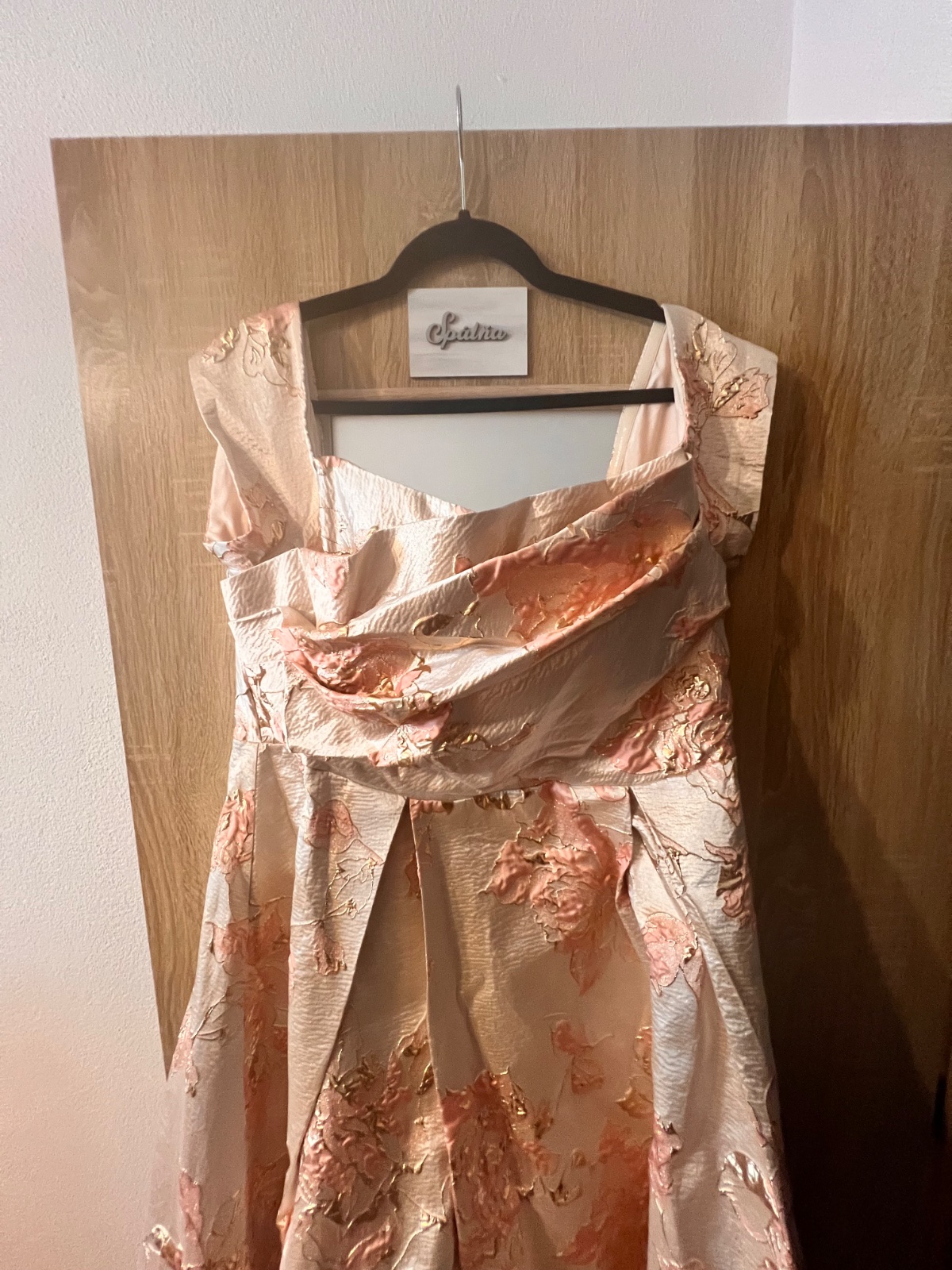 Spoločenské šaty 46/XXL Na predaj. Vďaka vysokému rozparku do miestnosti vstúpite a nepochybne rozžiarite všetko naokolo. Materiál šiat je mierne elastický a vzadu sa šaty zapínajú zipsom. Trbliet...