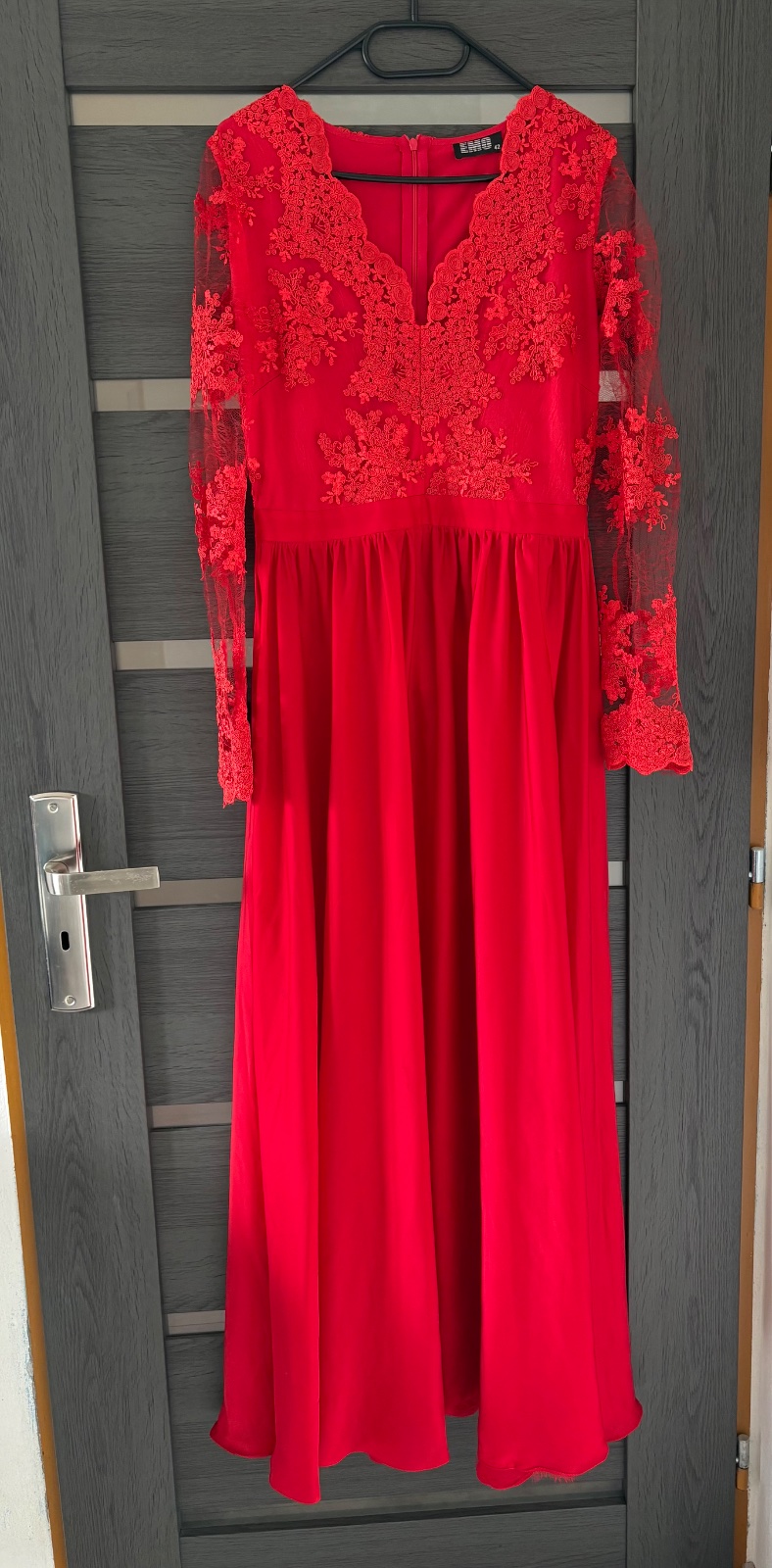 Krásné spoločenské šaty, v červenej farbe, raz oblečené, vyčistené bez chýb. Veľkosť uvedená 42. Sedia ako L ideálne.