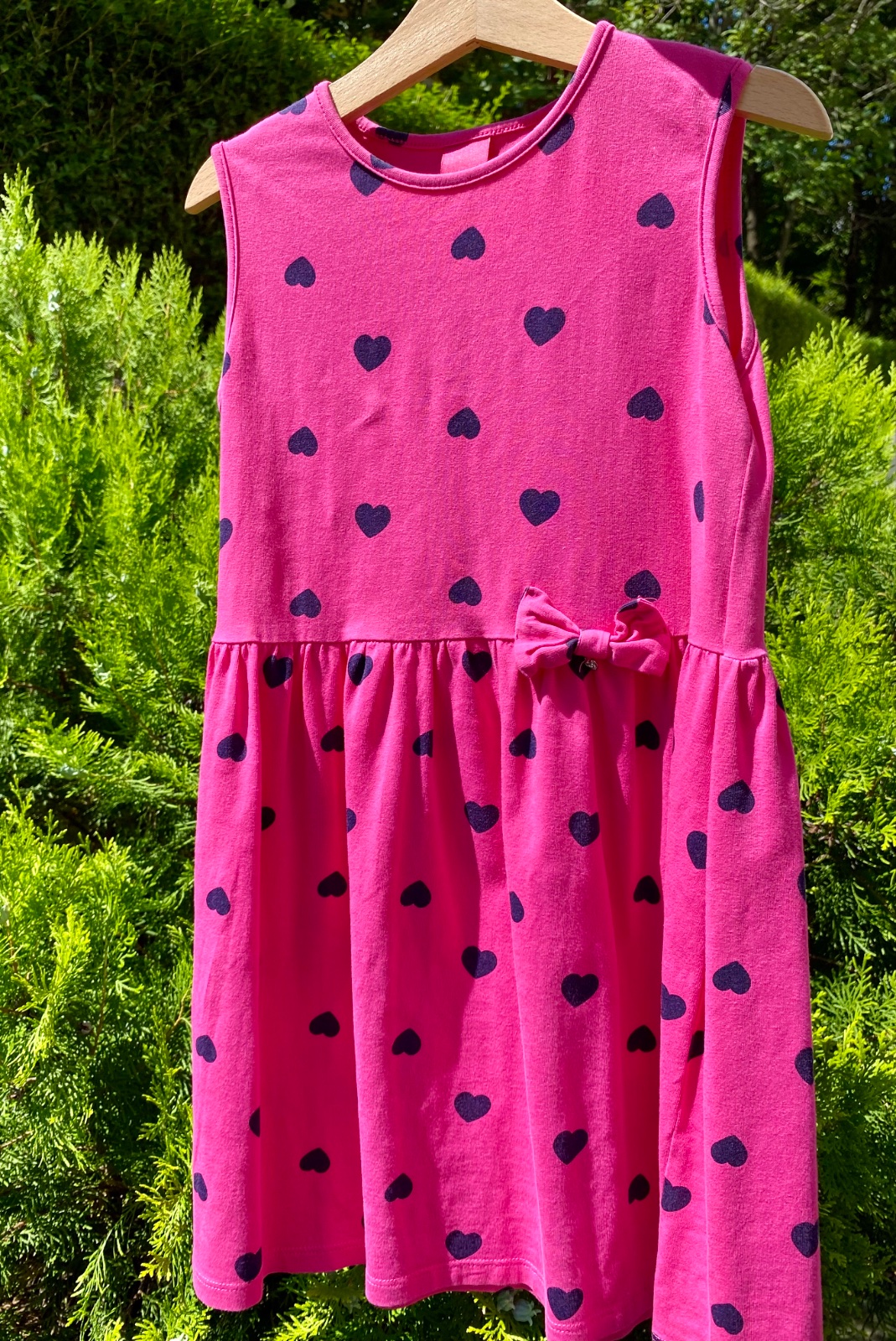Predám dievčenské ružové šaty so srdiečkami bez rukávov značky Atut. Na leto úplne ideálne a mega pohodlné. Zloženie bavlna. Veľkosť 128, 8 rokov. Predám za 7 euro osobný odber alebo plus poštovné.