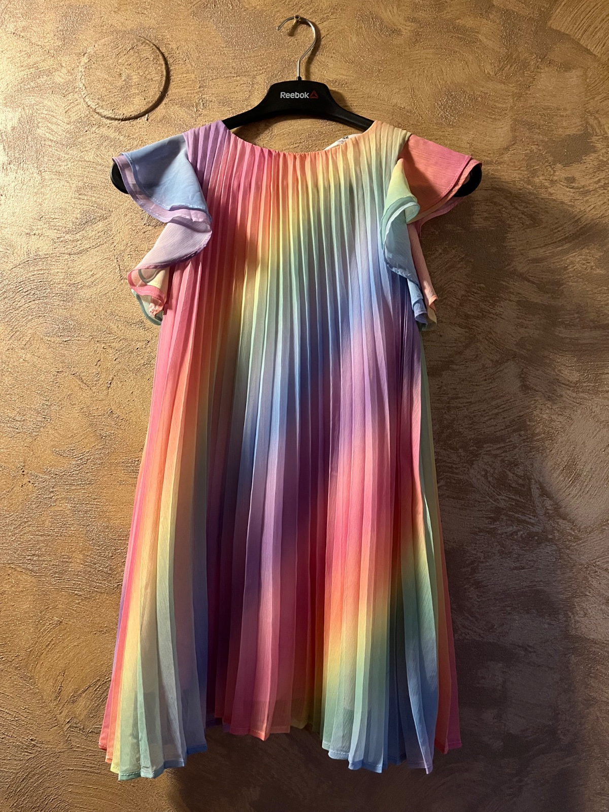 Veľmi dobrý stav! Dievčenské farebné šaty na tenké ramienka, letné, vhodné na bežné nosenie aj na príležitosť, nie sú elastické. Materiál 100%polyester. ROZMERY: dĺžka:73cm, od pazuchy dĺžka dole...